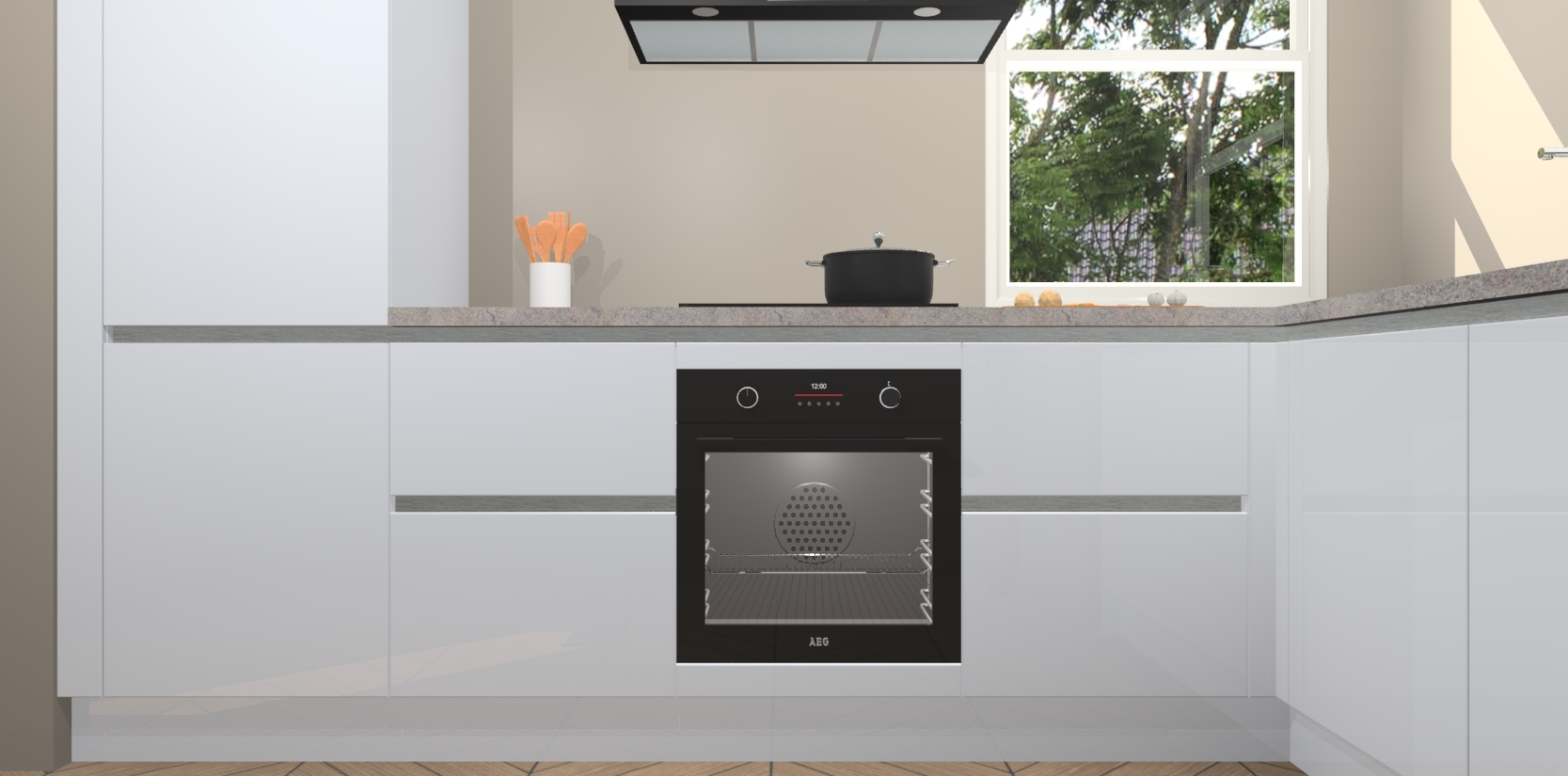 Wat maakt deze keuken zo bijzonder? Ten eerste geeft het houten werkblad uw ruimte een onmiskenbaar klassieke uitstraling. De natuurlijke afwerking roept warmte en elegantie op die nooit uit de mode zullen raken. Bovendien is het gemakkelijk schoon te houden en te onderhouden, zodat je er jarenlang plezier van kunt hebben. Als u op zoek bent naar extra gemak in uw keuken, dan heeft u bij het plaatsen van een bestelling bij ons ook de optie om uw toestellen te upgraden naar AEG-modellen - zo haalt u moderne innovatie van topmerken in apparatentechnologie rechtstreeks in huis.