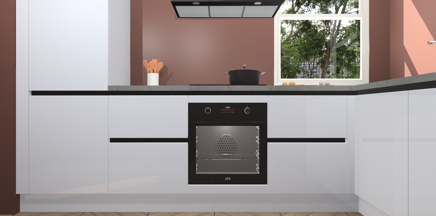 Wat maakt deze keuken zo bijzonder? Ten eerste geeft het houten werkblad uw ruimte een onmiskenbaar klassieke uitstraling. De natuurlijke afwerking roept warmte en elegantie op die nooit uit de mode zullen raken. Bovendien is het gemakkelijk schoon te houden en te onderhouden, zodat je er jarenlang plezier van kunt hebben. Als u op zoek bent naar extra gemak in uw keuken, dan heeft u bij het plaatsen van een bestelling bij ons ook de optie om uw toestellen te upgraden naar AEG-modellen - zo haalt u moderne innovatie van topmerken in apparatentechnologie rechtstreeks in huis.