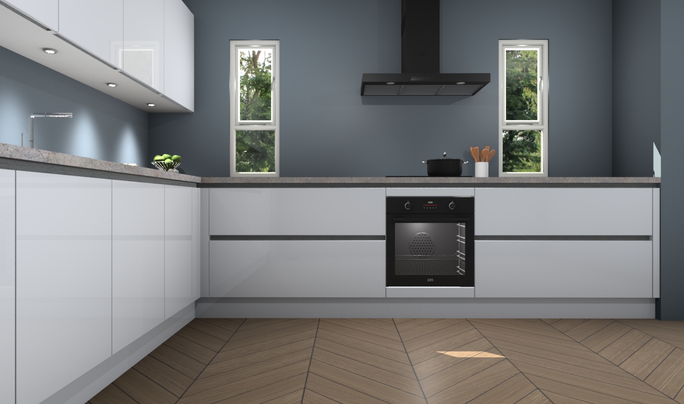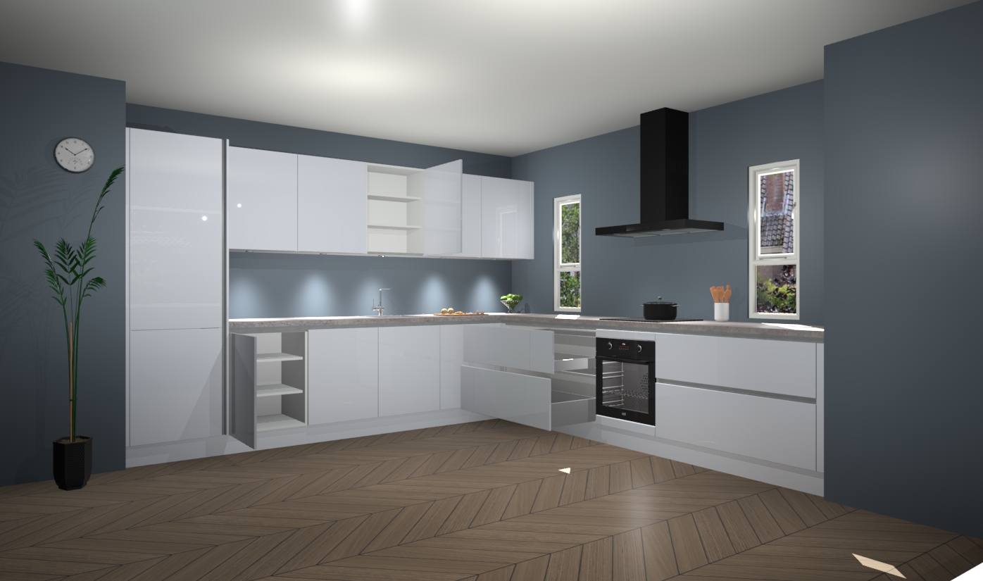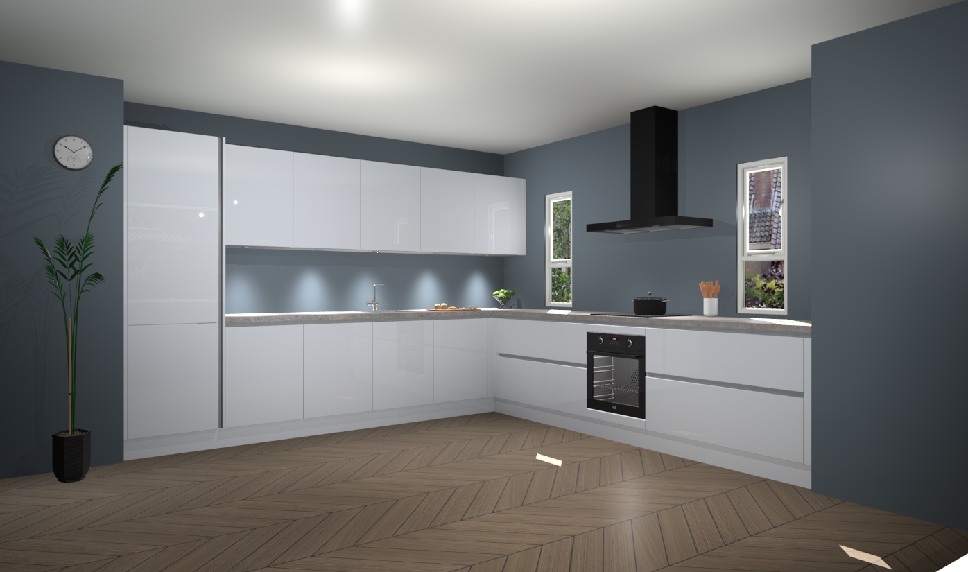 De sneeuwwitte hoogglans greeploze keuken is een ideale hoekkeuken en heeft alle functies en apparatuur die u maar nodig kunt hebben. Bij de bestelling krijgt u een oven, inductiekookplaat, afzuigkap, vaatwasser en koelkast - deze kunnen desgewenst eenvoudig worden uitgebreid naar AEG na bestellen. Elke kast wordt ook voor gemonteerd geleverd met soft close deuren die jarenlang gebruik beloven. Stelt u zich voor dat u geen gedoe heeft met vervelende montage - vanaf het moment dat u uw bestelling plaats, duurt het slechts 7 weken voor het bij u thuis geleverd wordt.