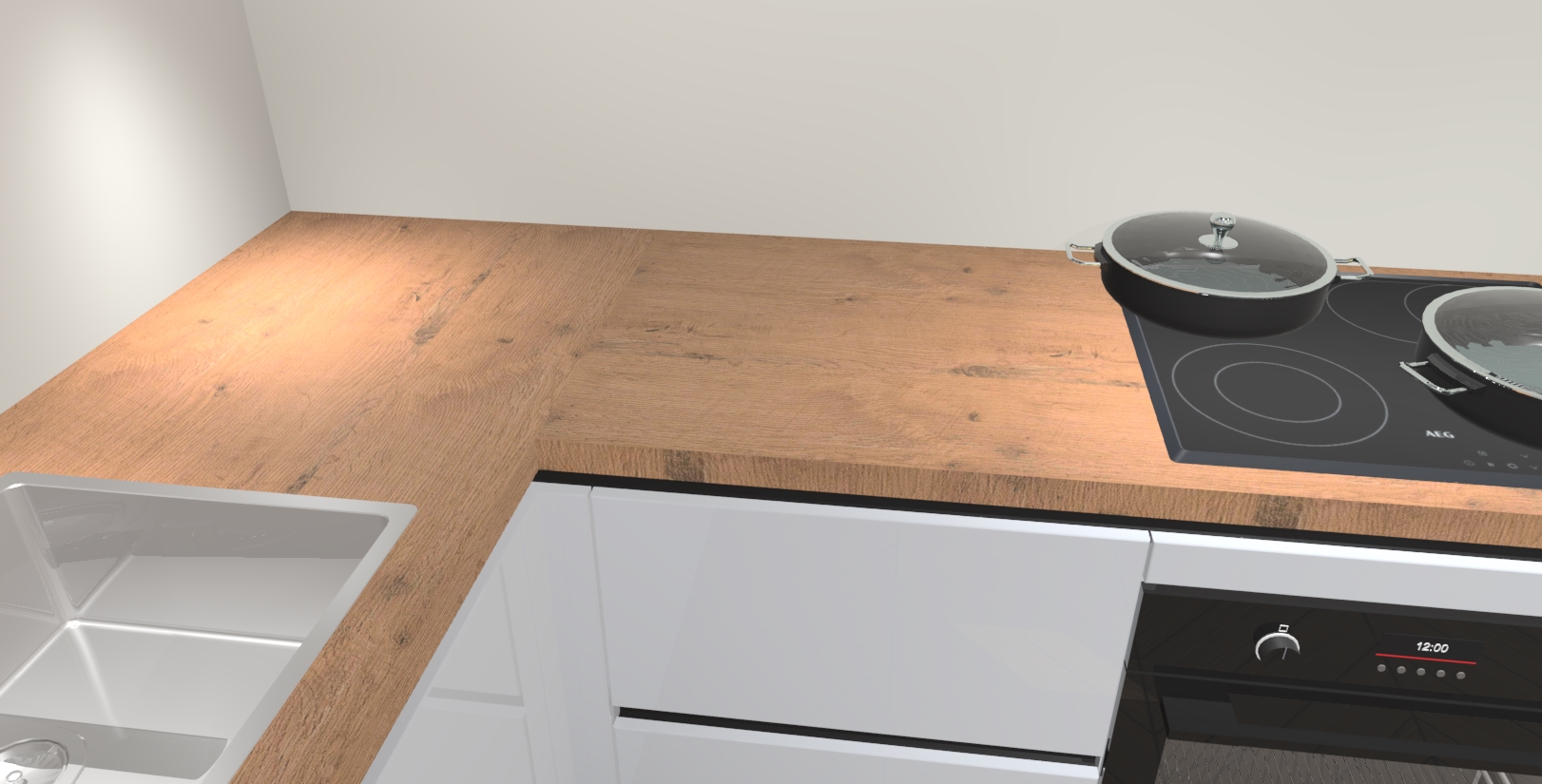 - Bij een hoekwerkblad zijn de hoeken in gevreesd en op maat gemaakt
