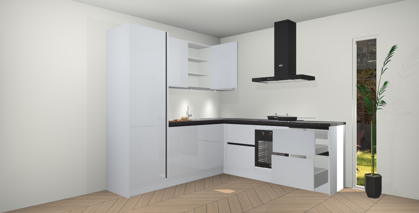 Inclusief plinten, stelpoten en werkblad