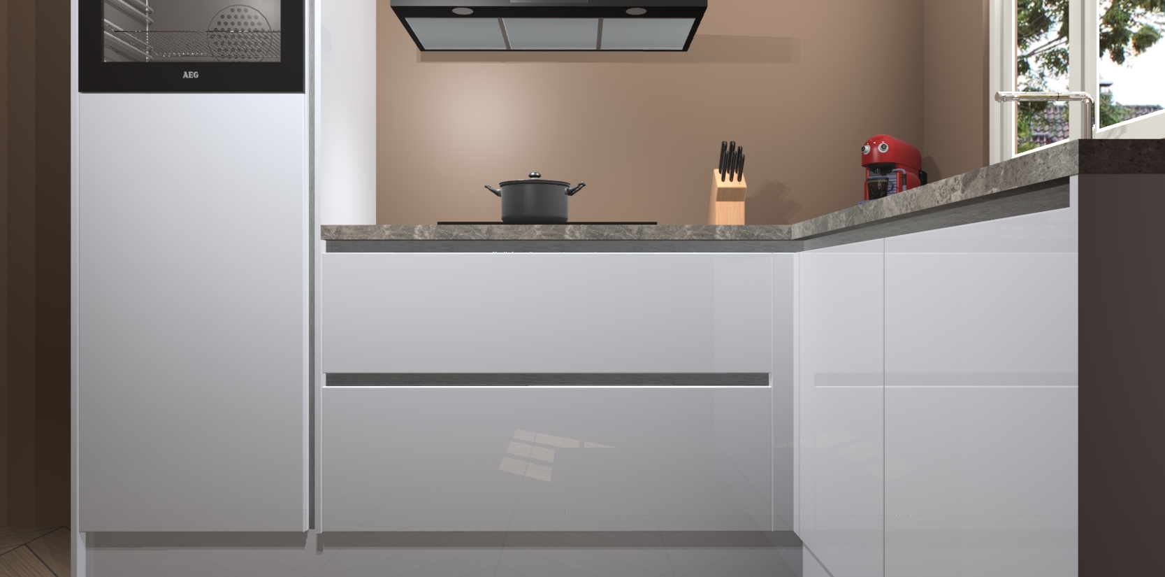 Dit model biedt u voldoende opbergruimte en vijf ingebouwde apparaten: een oven, inductiekookplaat, afzuigkap, vaatwasser en koelkast. Deze apparaten kunnen gemakkelijk worden geüpgrade naar AEG nadat u besteld heeft. De verschillende laden en kastjes bevatten softclose-deuren waardoor ze gezellig dichtvallen met een geruststellend helemaal geruisloos geluid. En dat is nog niet alles! We garanderen ook dat de prijs altijd laag blijft - dus haal nu uw Sneeuwwitte hoogglans greeploze keuken Victoria terwijl het kan.