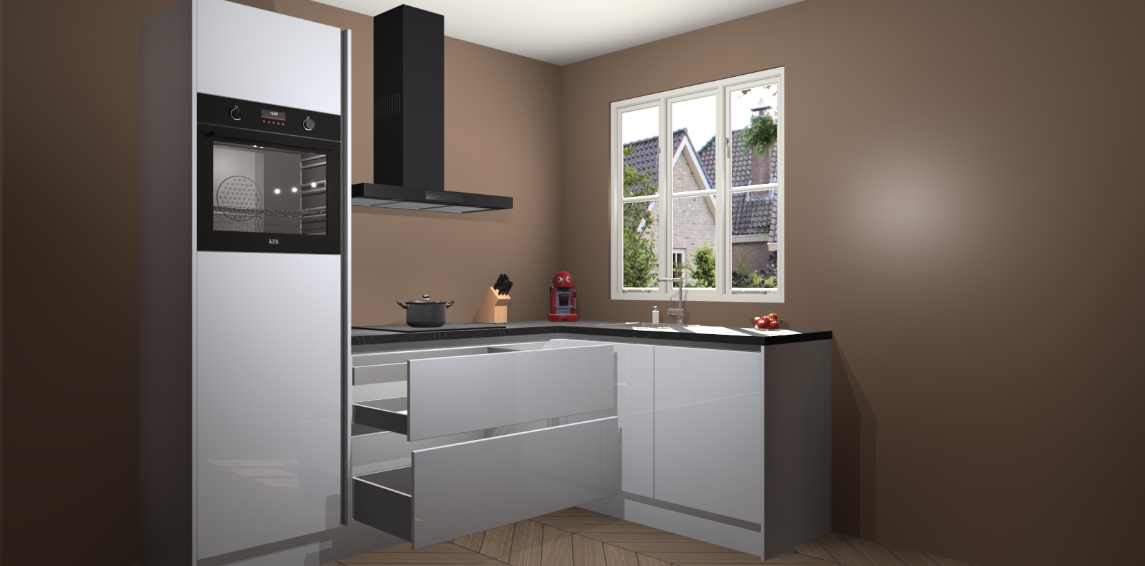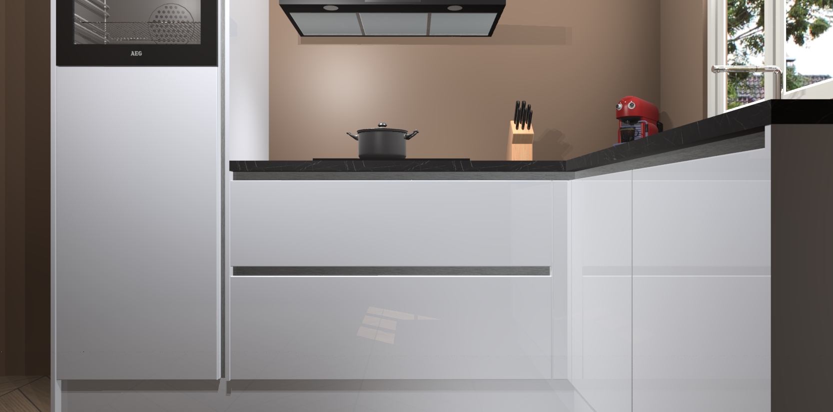 Dit model biedt u voldoende opbergruimte en vijf ingebouwde apparaten: een oven, inductiekookplaat, afzuigkap, vaatwasser en koelkast. Deze apparaten kunnen gemakkelijk worden geüpgrade naar AEG nadat u besteld heeft. De verschillende laden en kastjes bevatten softclose-deuren waardoor ze gezellig dichtvallen met een geruststellend helemaal geruisloos geluid. En dat is nog niet alles! We garanderen ook dat de prijs altijd laag blijft - dus haal nu uw Sneeuwwitte hoogglans greeploze keuken Victoria terwijl het kan.