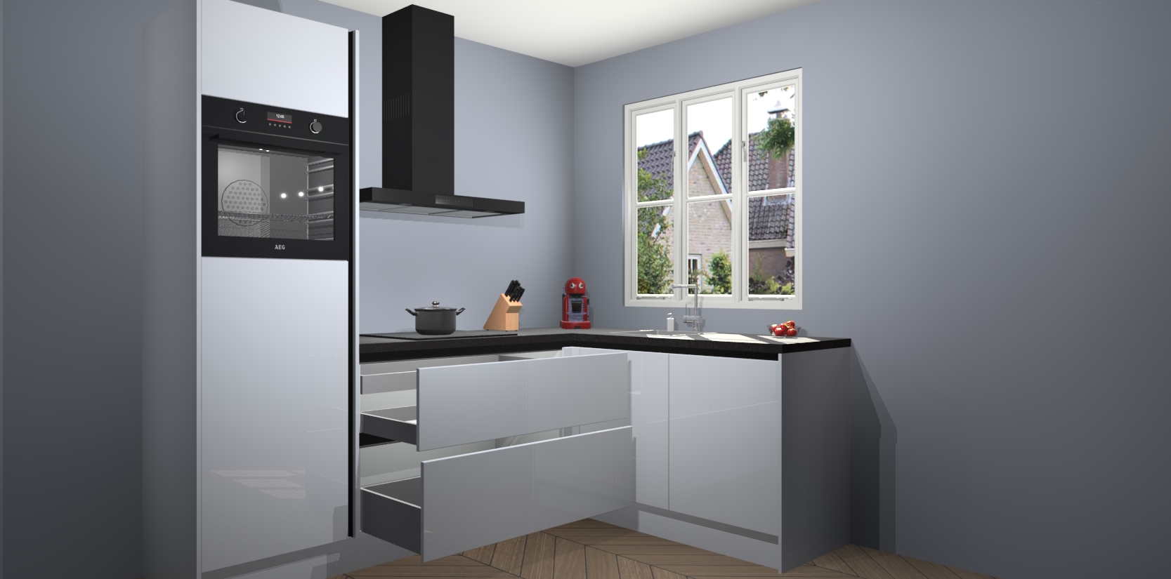 Dit model biedt u voldoende opbergruimte en vijf ingebouwde apparaten: een oven, inductiekookplaat, afzuigkap, vaatwasser en koelkast. Deze apparaten kunnen gemakkelijk worden geüpgrade naar AEG nadat u besteld heeft. De verschillende laden en kastjes bevatten softclose-deuren waardoor ze gezellig dichtvallen met een geruststellend helemaal geruisloos geluid. En dat is nog niet alles! We garanderen ook dat de prijs altijd laag blijft - dus haal nu uw Sneeuwwitte hoogglans greeploze keuken Victoria terwijl het kan.