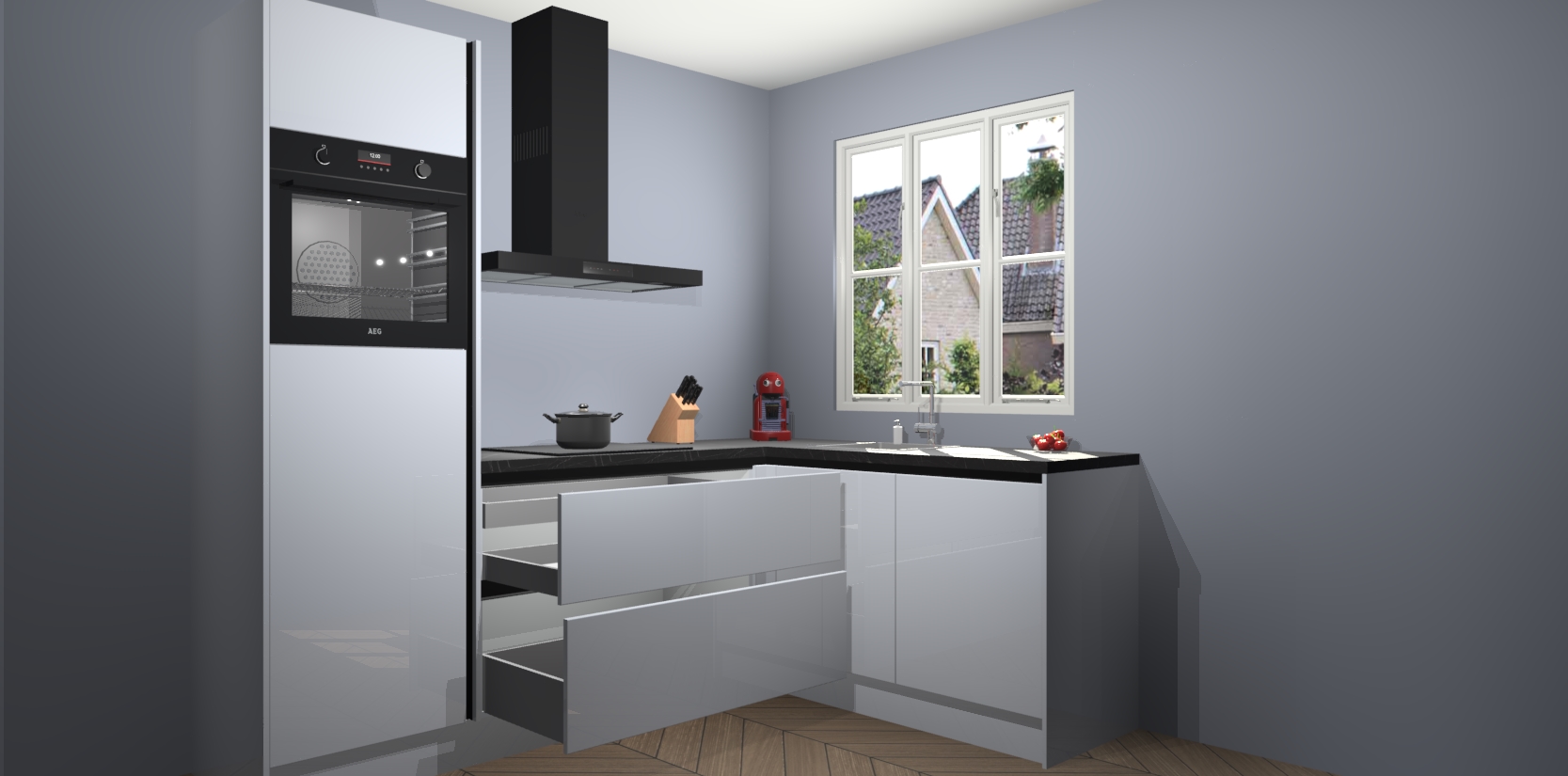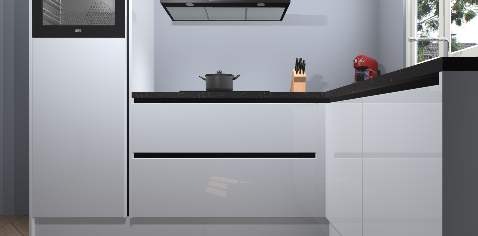 Dit model biedt u voldoende opbergruimte en vijf ingebouwde apparaten: een oven, inductiekookplaat, afzuigkap, vaatwasser en koelkast. Deze apparaten kunnen gemakkelijk worden geüpgrade naar AEG nadat u besteld heeft. De verschillende laden en kastjes bevatten softclose-deuren waardoor ze gezellig dichtvallen met een geruststellend helemaal geruisloos geluid. En dat is nog niet alles! We garanderen ook dat de prijs altijd laag blijft - dus haal nu uw Sneeuwwitte hoogglans greeploze keuken Victoria terwijl het kan.