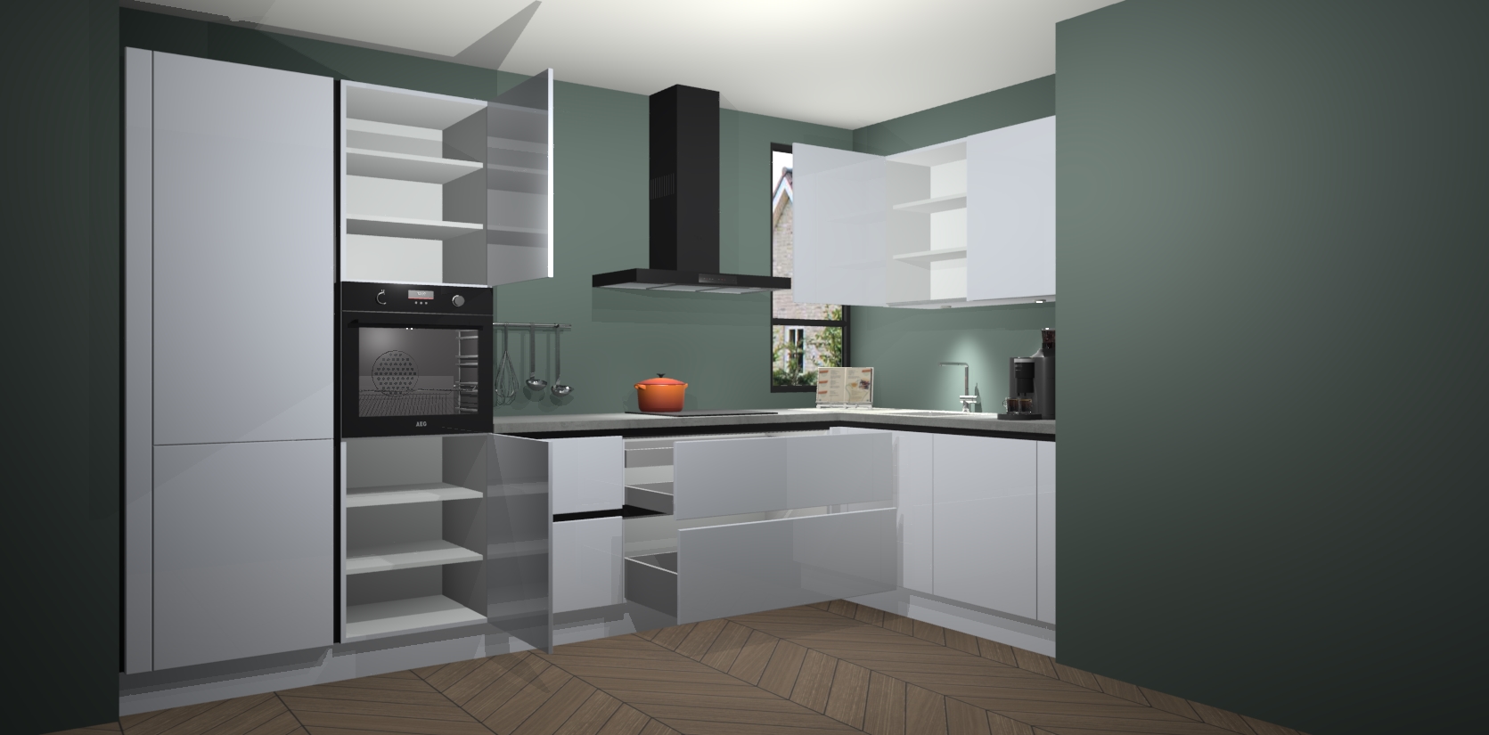 Welkom in uw nieuwe moderne keuken! Laat ons u voorstellen aan de Sneeuwwitte hoogglans greeploze keuken Vlaanderen . Deze prachtige hoekkeuken straalt exclusiviteit en luxe uit als geen ander. Het strakke design, de tijdloze kleuren en het greeploze model maken van deze keuken een moderne klassieker. En met voldoende opbergruimte heeft deze keuken echt voor ieder wat wils.