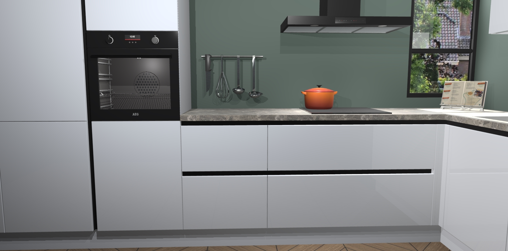 En dat alles voor een vaste lage prijs - u hoeft dus niet in te leveren op kwaliteit of stijl om te krijgen wat u nodig heeft en wilt van uw nieuwe keuken. En met een supersnelle levering van 7 weken kan u in een mum van tijd beginnen koken! En het beste van alles: de kasten worden voorgemonteerd geleverd, dus de installatie is eenvoudig. Bovendien wordt elk onderdeel geleverd met Duitse kwaliteitsgarantie, wat betekent dat deze keuken gemaakt is om jarenlang mee te gaan! En er is nog meer: het pakket bevat 5 inbouwapparaten: een oven, inductiekookplaat, afzuigkap, vaatwasser en koelkast die u na bestelling kunt upgraden naar AEG-modellen. Ook inbegrepen zijn softclose deuren die het gebruik voor zowel kinderen als volwassenen gemakkelijk en veilig maken.