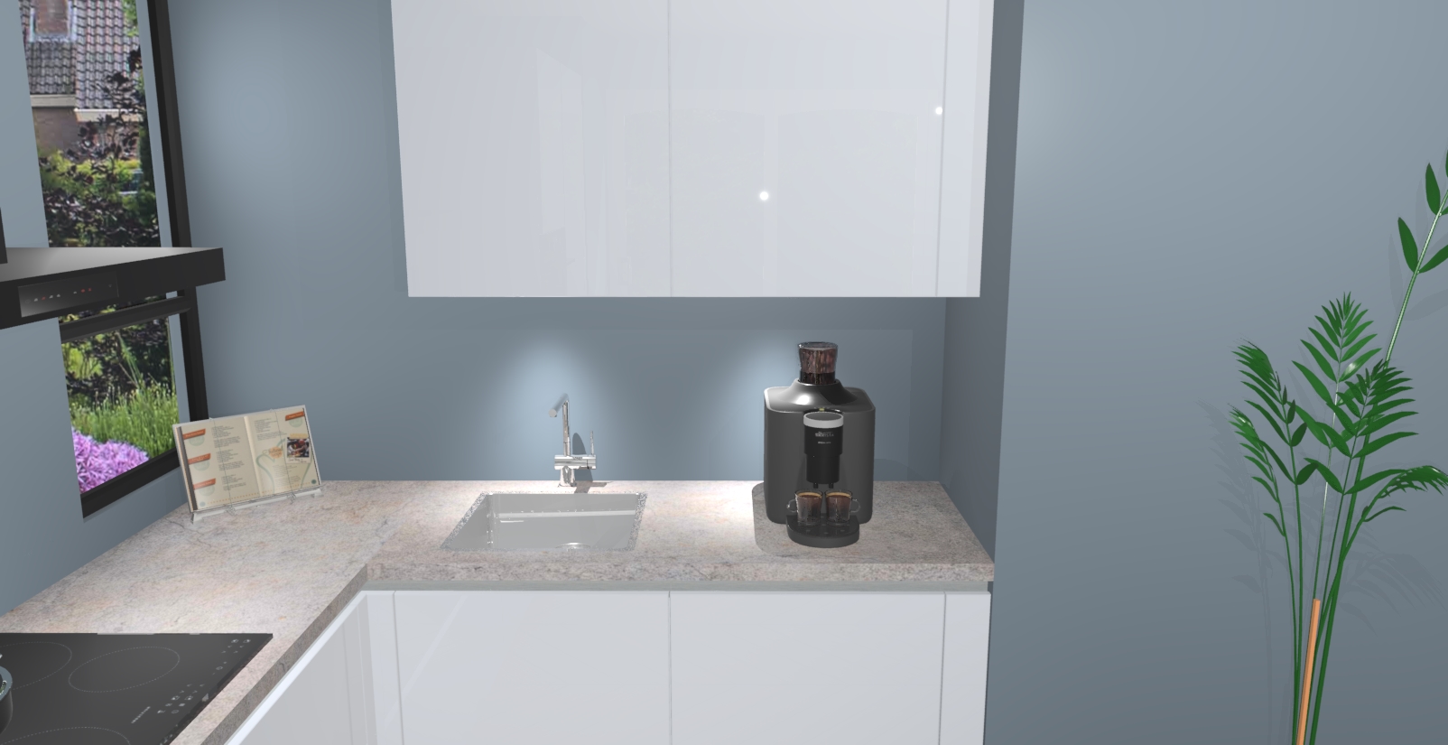 - De spoelbak is nog niet in gevreesd. Dit dient tijdens het werk gedaan te worden