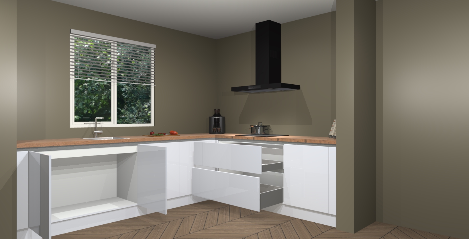 - Bij een hoekwerkblad zijn de hoeken in gevreesd en op maat gemaakt