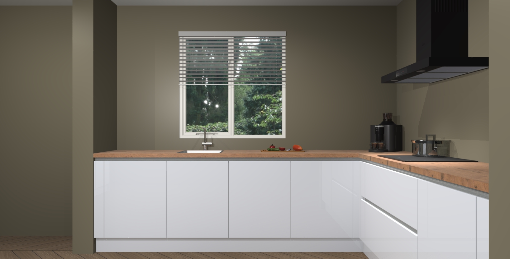 Met een modern, tijdloos design en ruime opslagruimte, zult u zich in no-time thuis voelen in uw nieuwe keuken. Uw leven wordt eenvoudiger met de soft-close deuren die voor het ultieme stille comfort zorgen - geen geluid dat u stoort terwijl u kookt. Ook is de keuken voorzien van 5 ingebouwde apparaten: een oven, inductie kookplaat, afzuigkap, vaatwasser en koelkast. Deze kunnen gemakkelijk na bestelling worden bijgewerkt naar AEG - waardoor uw luxe ervaring compleet is.