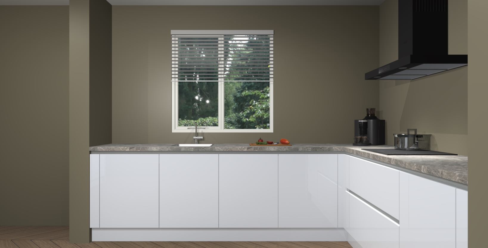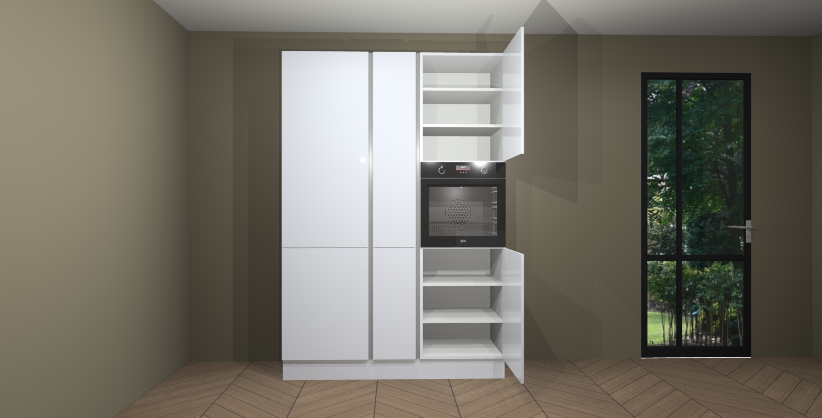 Met een modern, tijdloos design en ruime opslagruimte, zult u zich in no-time thuis voelen in uw nieuwe keuken. Uw leven wordt eenvoudiger met de soft-close deuren die voor het ultieme stille comfort zorgen - geen geluid dat u stoort terwijl u kookt. Ook is de keuken voorzien van 5 ingebouwde apparaten: een oven, inductie kookplaat, afzuigkap, vaatwasser en koelkast. Deze kunnen gemakkelijk na bestelling worden bijgewerkt naar AEG - waardoor uw luxe ervaring compleet is.