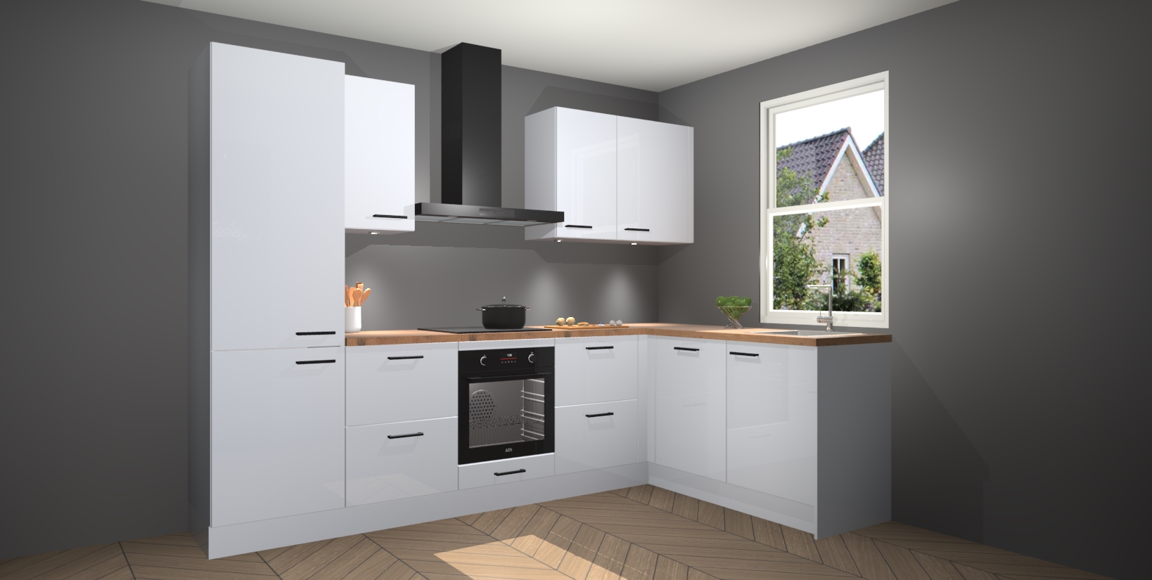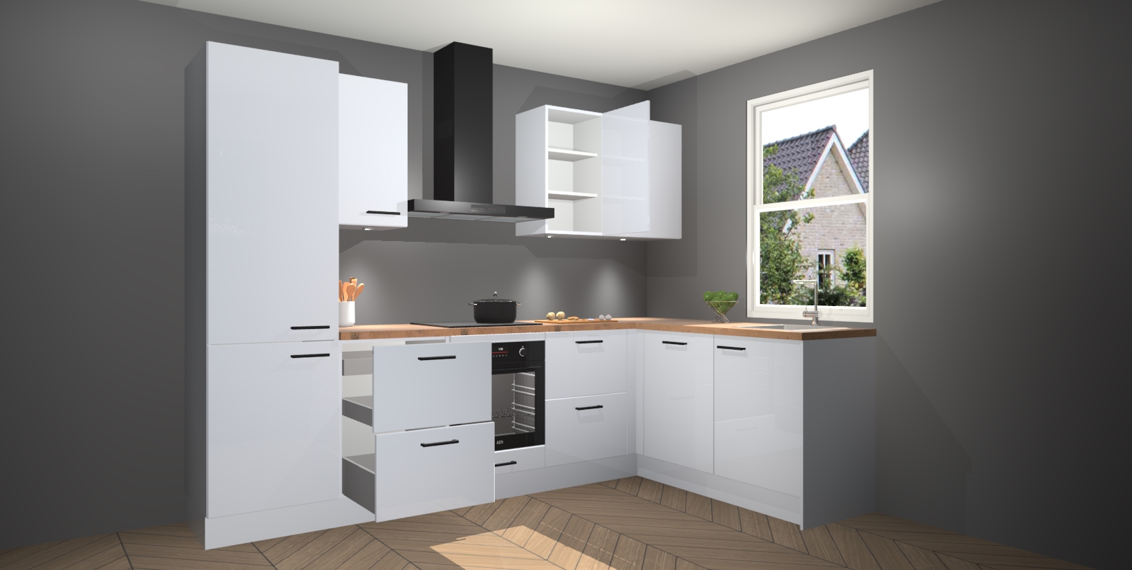 Voor iedereen die op zoek is naar een upgrade van zijn kookimperium, zoek niet verder dan de Sneeuwwitte hoogglans keuken Bazel van Kitchen247!