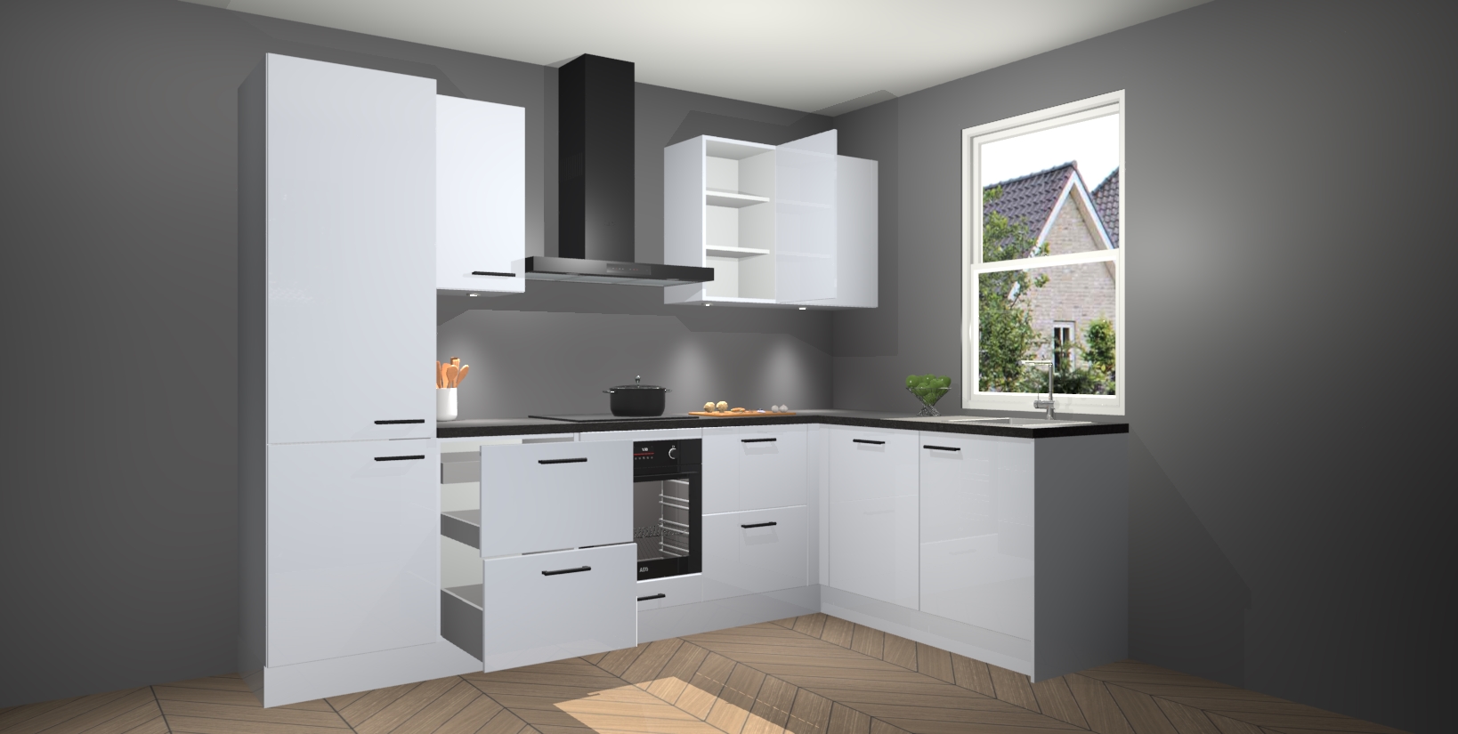 Voor iedereen die op zoek is naar een upgrade van zijn kookimperium, zoek niet verder dan de Sneeuwwitte hoogglans keuken Bazel van Kitchen247!