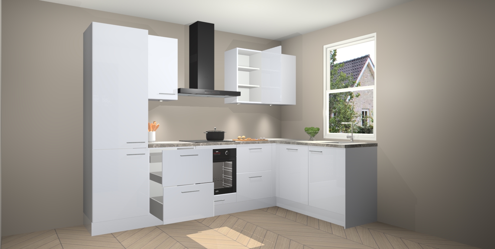 Voor iedereen die op zoek is naar een upgrade van zijn kookimperium, zoek niet verder dan de Sneeuwwitte hoogglans keuken Bazel van Kitchen247!