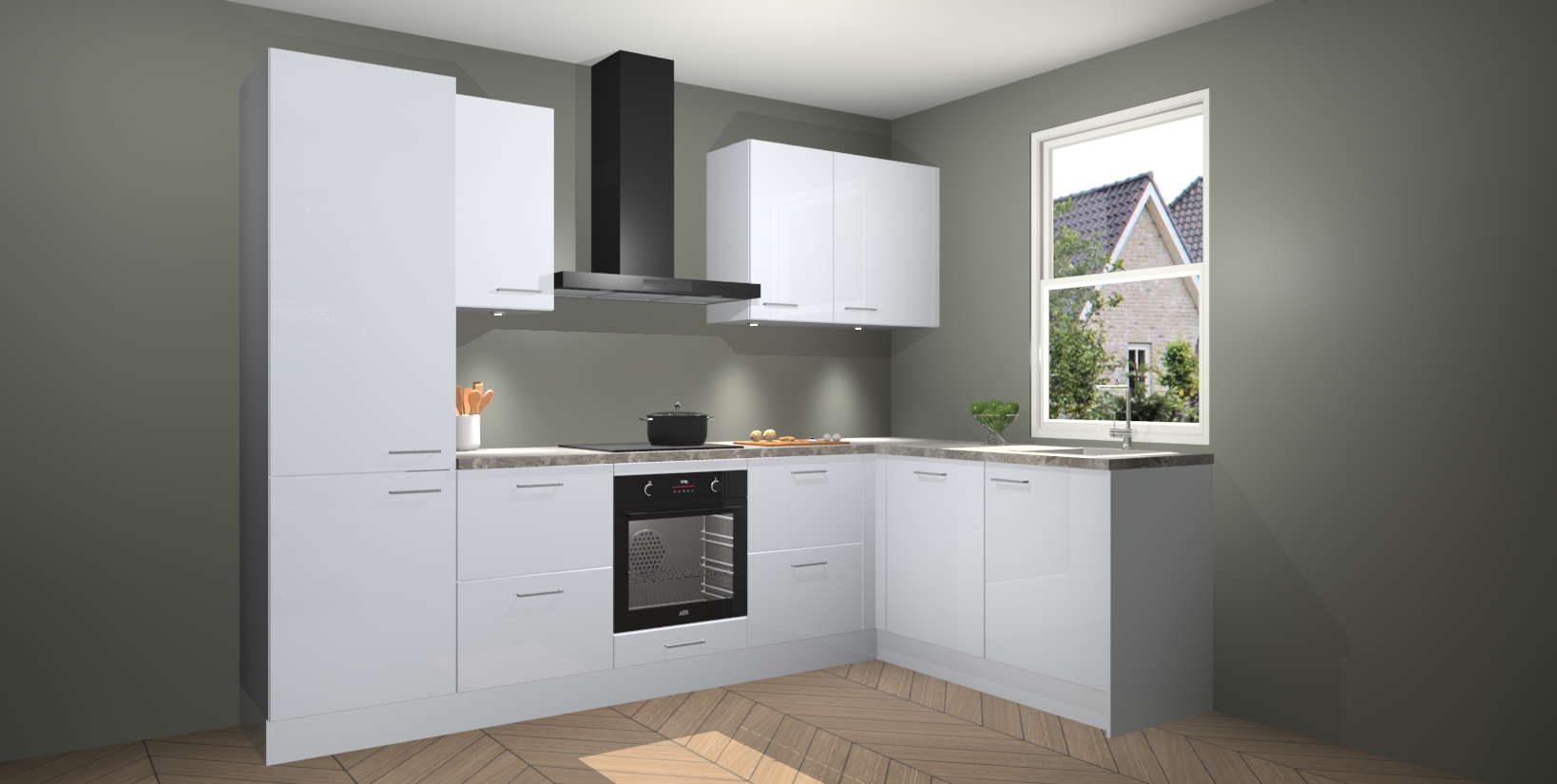 Voor iedereen die op zoek is naar een upgrade van zijn kookimperium, zoek niet verder dan de Sneeuwwitte hoogglans keuken Bazel van Kitchen247!