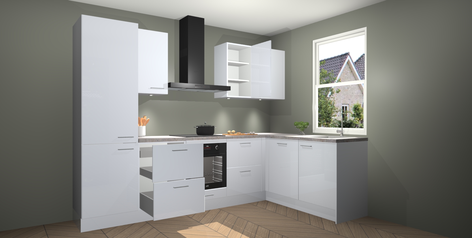 Maak kennis met de trendsettende en luxe Sneeuwwitte hoogglans keuken Bazel! Deze uitzonderlijke keuken van Duitse kwaliteit is stijlvol, modern en perfect om elk huis mee op te fleuren. De binnenkant van de kasten worden meegenomen in een bijpassende kleur om een samenhangende eigentijdse esthetiek te voltooien. U zult dol zijn op hoe uw pas gerenoveerde keuken eruitziet met de Sneeuwwitte hoogglans editie!