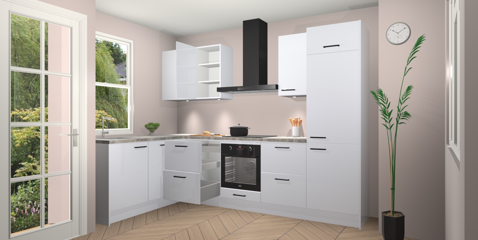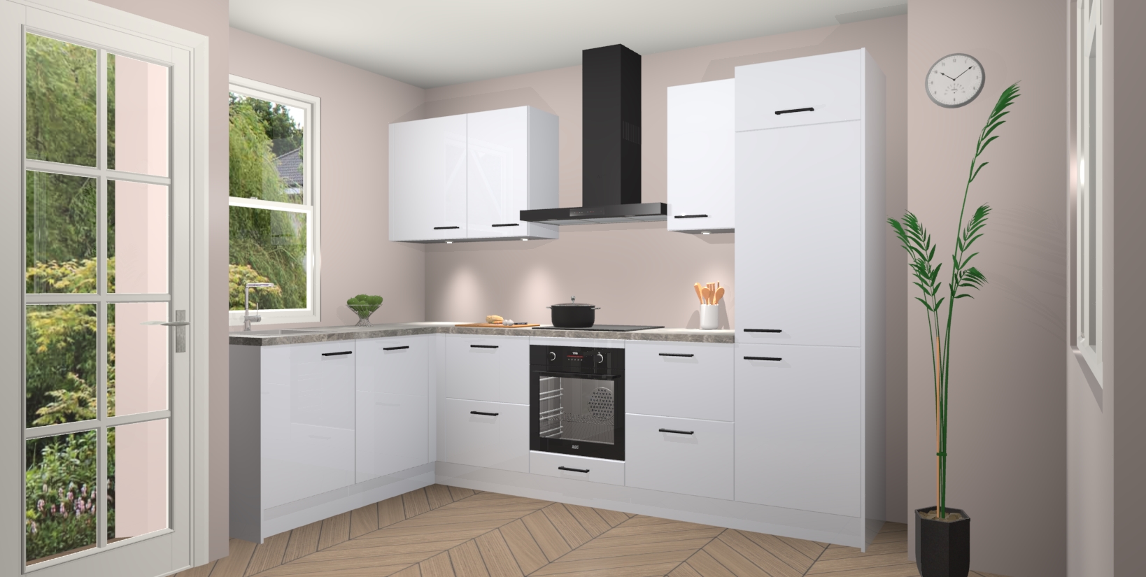 Bent u op zoek naar een strakke, moderne hoekkeuken die uw huis oppept en een moderne uitstraling geeft? Kijk dan niet verder dan de sneeuwwitte hoogglans keuken Beijing. Deze verbluffende hoekkeuken tilt hedendaags design naar een hoger niveau. Qua stijl is deze chique hoekkeuken voorzien van sneeuwwitte hoogglans accenten, om een strakke maar opvallende look te creëren. De binnenkant van de kasten is afgewerkt in dezelfde prachtige sneeuwwitte hoogglans kleur voor extra esthetische aantrekkingskracht.