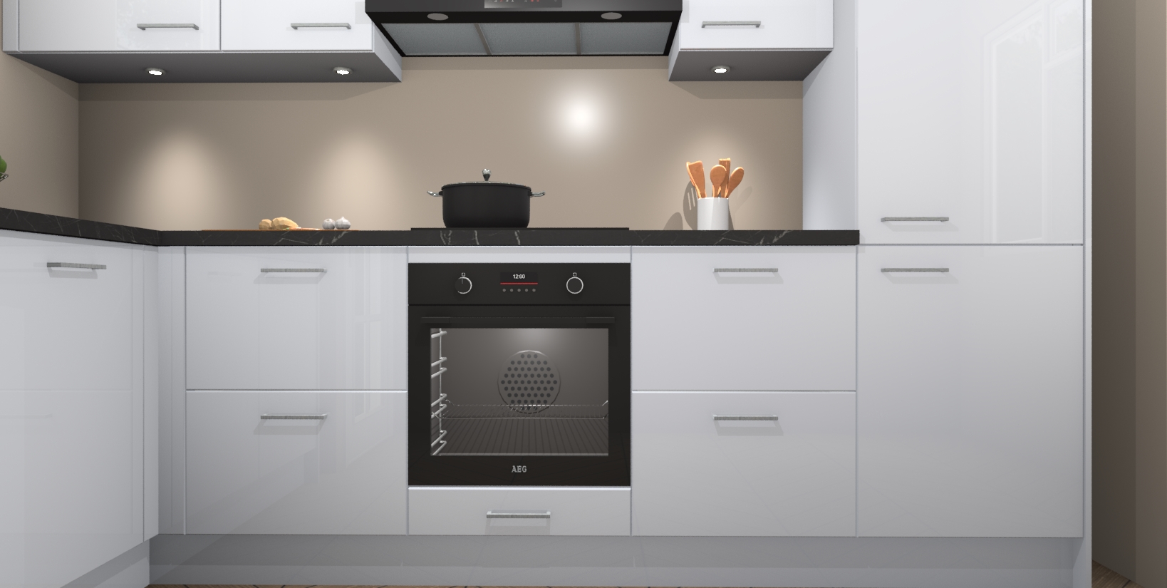 U hoeft zich ook geen zorgen te maken over een gebrek aan opbergruimte, want deze keuken heeft voldoende opbergmogelijkheden zowel boven als onder het aanrecht. Om het leven nog makkelijker te maken, wordt deze moderne hoekkeuken geleverd met 5 ingebouwde apparaten, waaronder een oven, inductiekookplaat, afzuigkap, vaatwasser en koelkast, zodat u in een mum van tijd klaar bent voor actie!