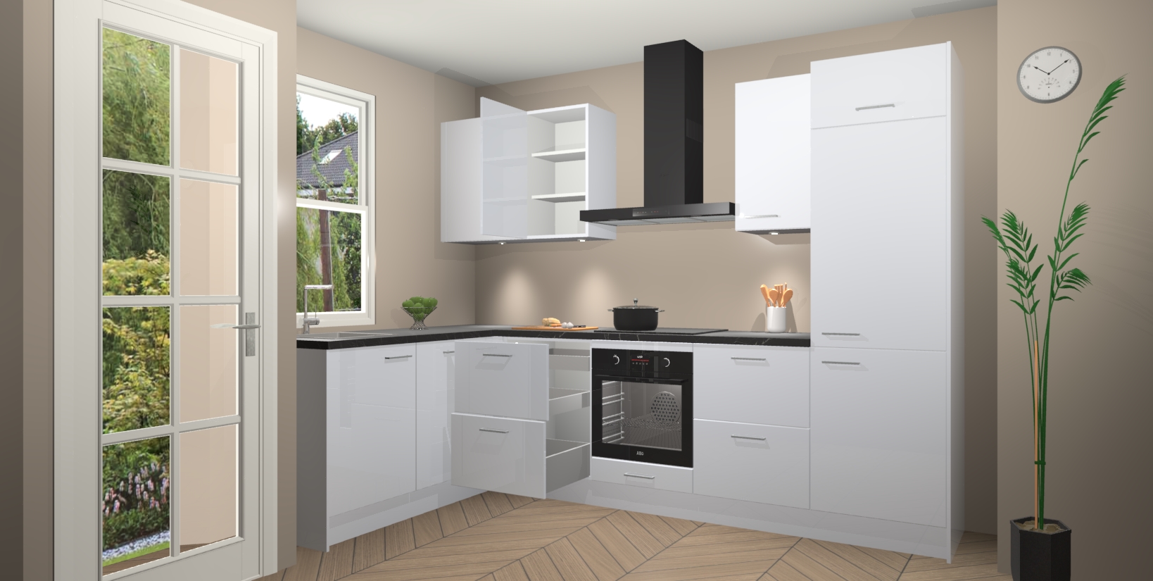 Bent u op zoek naar een strakke, moderne hoekkeuken die uw huis oppept en een moderne uitstraling geeft? Kijk dan niet verder dan de sneeuwwitte hoogglans keuken Beijing. Deze verbluffende hoekkeuken tilt hedendaags design naar een hoger niveau. Qua stijl is deze chique hoekkeuken voorzien van sneeuwwitte hoogglans accenten, om een strakke maar opvallende look te creëren. De binnenkant van de kasten is afgewerkt in dezelfde prachtige sneeuwwitte hoogglans kleur voor extra esthetische aantrekkingskracht.