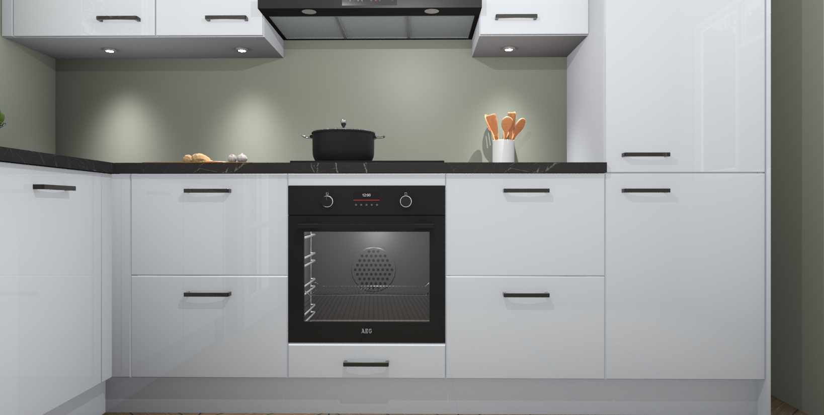 U hoeft zich ook geen zorgen te maken over een gebrek aan opbergruimte, want deze keuken heeft voldoende opbergmogelijkheden zowel boven als onder het aanrecht. Om het leven nog makkelijker te maken, wordt deze moderne hoekkeuken geleverd met 5 ingebouwde apparaten, waaronder een oven, inductiekookplaat, afzuigkap, vaatwasser en koelkast, zodat u in een mum van tijd klaar bent voor actie!