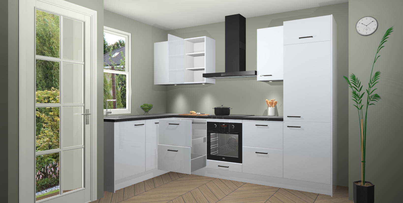 Bent u op zoek naar een strakke, moderne hoekkeuken die uw huis oppept en een moderne uitstraling geeft? Kijk dan niet verder dan de sneeuwwitte hoogglans keuken Beijing. Deze verbluffende hoekkeuken tilt hedendaags design naar een hoger niveau. Qua stijl is deze chique hoekkeuken voorzien van sneeuwwitte hoogglans accenten, om een strakke maar opvallende look te creëren. De binnenkant van de kasten is afgewerkt in dezelfde prachtige sneeuwwitte hoogglans kleur voor extra esthetische aantrekkingskracht.