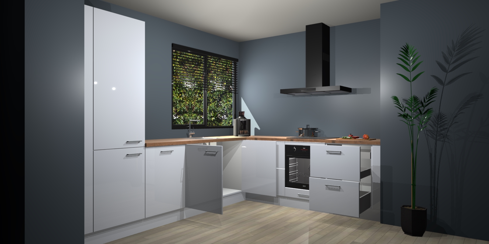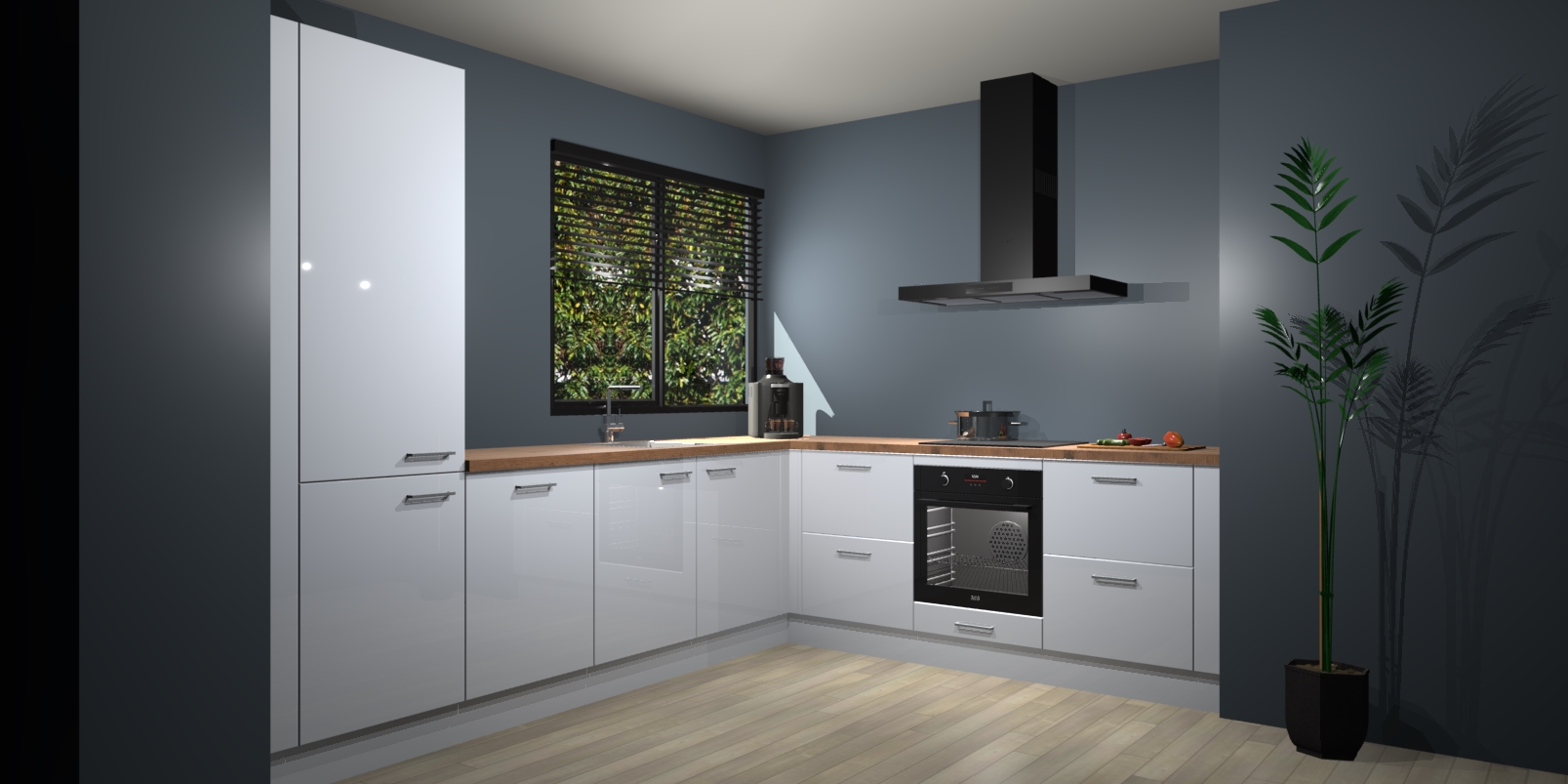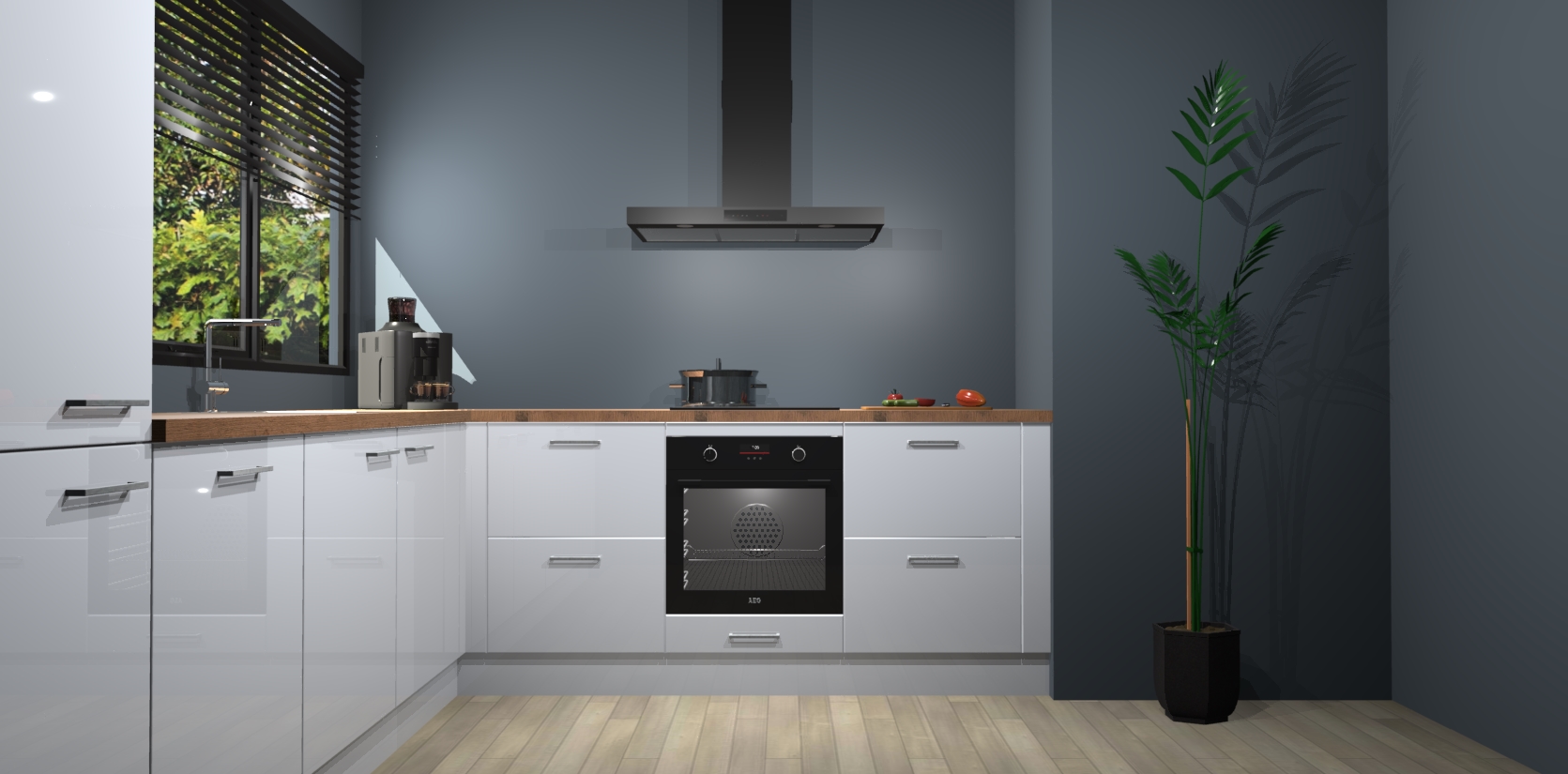 Met een modern, tijdloos design en ruime opslagruimte, zult u zich in no-time thuis voelen in uw nieuwe keuken. Uw leven wordt eenvoudiger met de soft-close deuren die voor het ultieme stille comfort zorgen - geen geluid dat u stoort terwijl u kookt. Ook is de keuken voorzien van 5 ingebouwde apparaten: een oven, inductie kookplaat, afzuigkap, vaatwasser en koelkast. Deze kunnen gemakkelijk na bestelling worden bijgewerkt naar AEG - waardoor uw luxe ervaring compleet is.