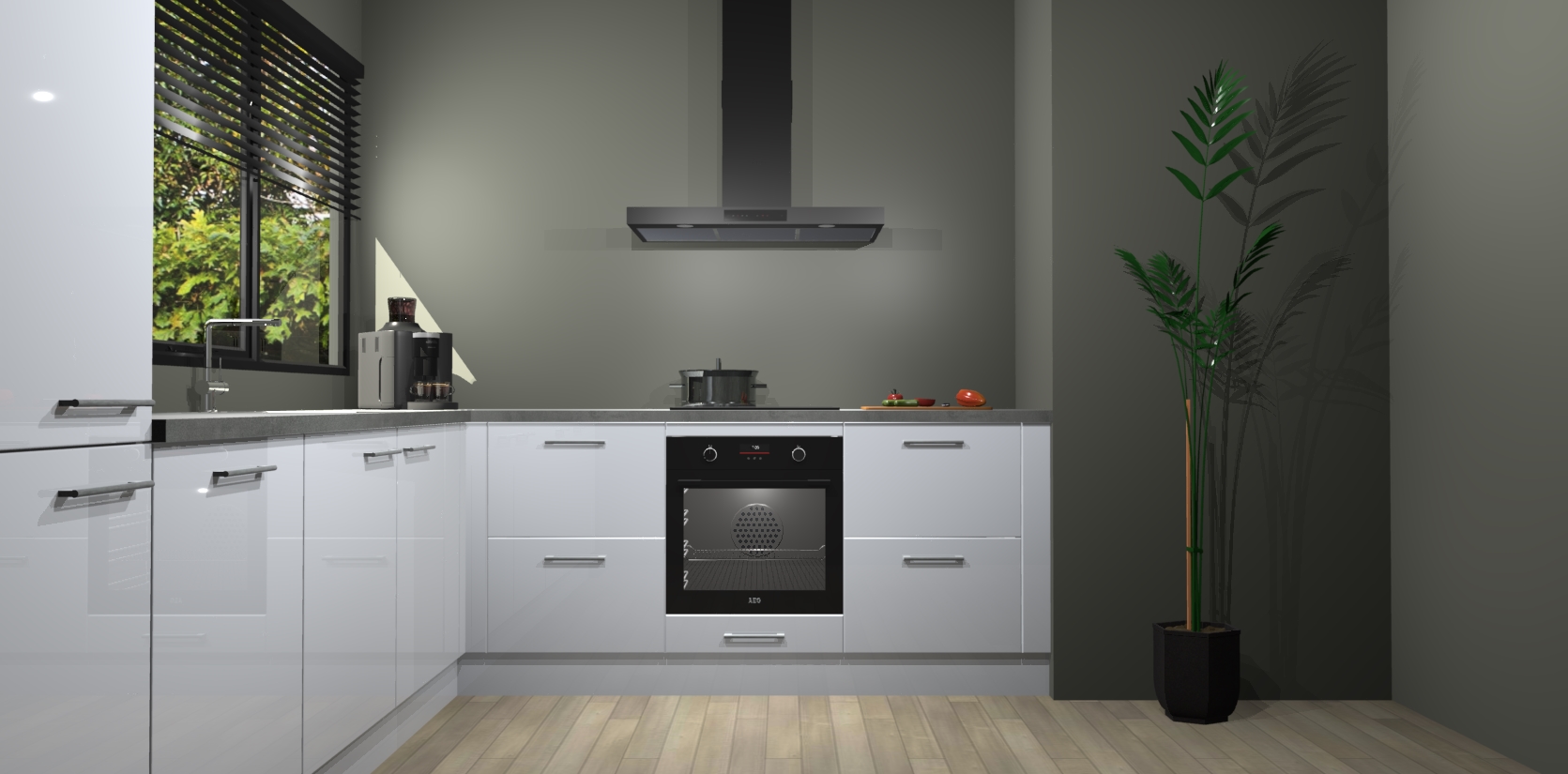 Met een modern, tijdloos design en ruime opslagruimte, zult u zich in no-time thuis voelen in uw nieuwe keuken. Uw leven wordt eenvoudiger met de soft-close deuren die voor het ultieme stille comfort zorgen - geen geluid dat u stoort terwijl u kookt. Ook is de keuken voorzien van 5 ingebouwde apparaten: een oven, inductie kookplaat, afzuigkap, vaatwasser en koelkast. Deze kunnen gemakkelijk na bestelling worden bijgewerkt naar AEG - waardoor uw luxe ervaring compleet is.