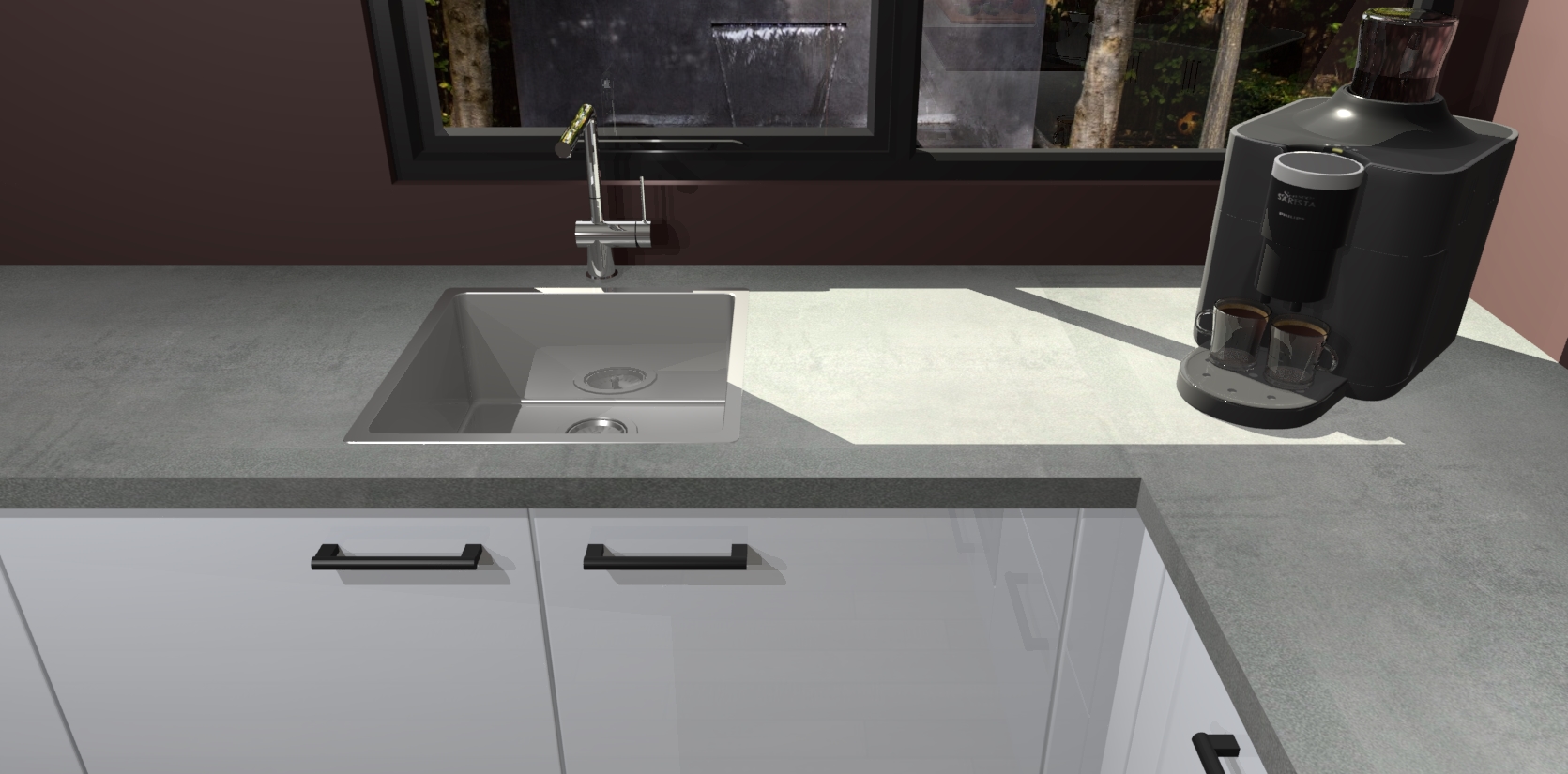 - De spoelbak is nog niet in gevreesd. Dit dient tijdens het werk gedaan te worden