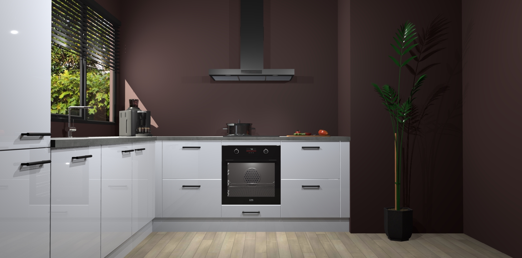 Met een modern, tijdloos design en ruime opslagruimte, zult u zich in no-time thuis voelen in uw nieuwe keuken. Uw leven wordt eenvoudiger met de soft-close deuren die voor het ultieme stille comfort zorgen - geen geluid dat u stoort terwijl u kookt. Ook is de keuken voorzien van 5 ingebouwde apparaten: een oven, inductie kookplaat, afzuigkap, vaatwasser en koelkast. Deze kunnen gemakkelijk na bestelling worden bijgewerkt naar AEG - waardoor uw luxe ervaring compleet is.