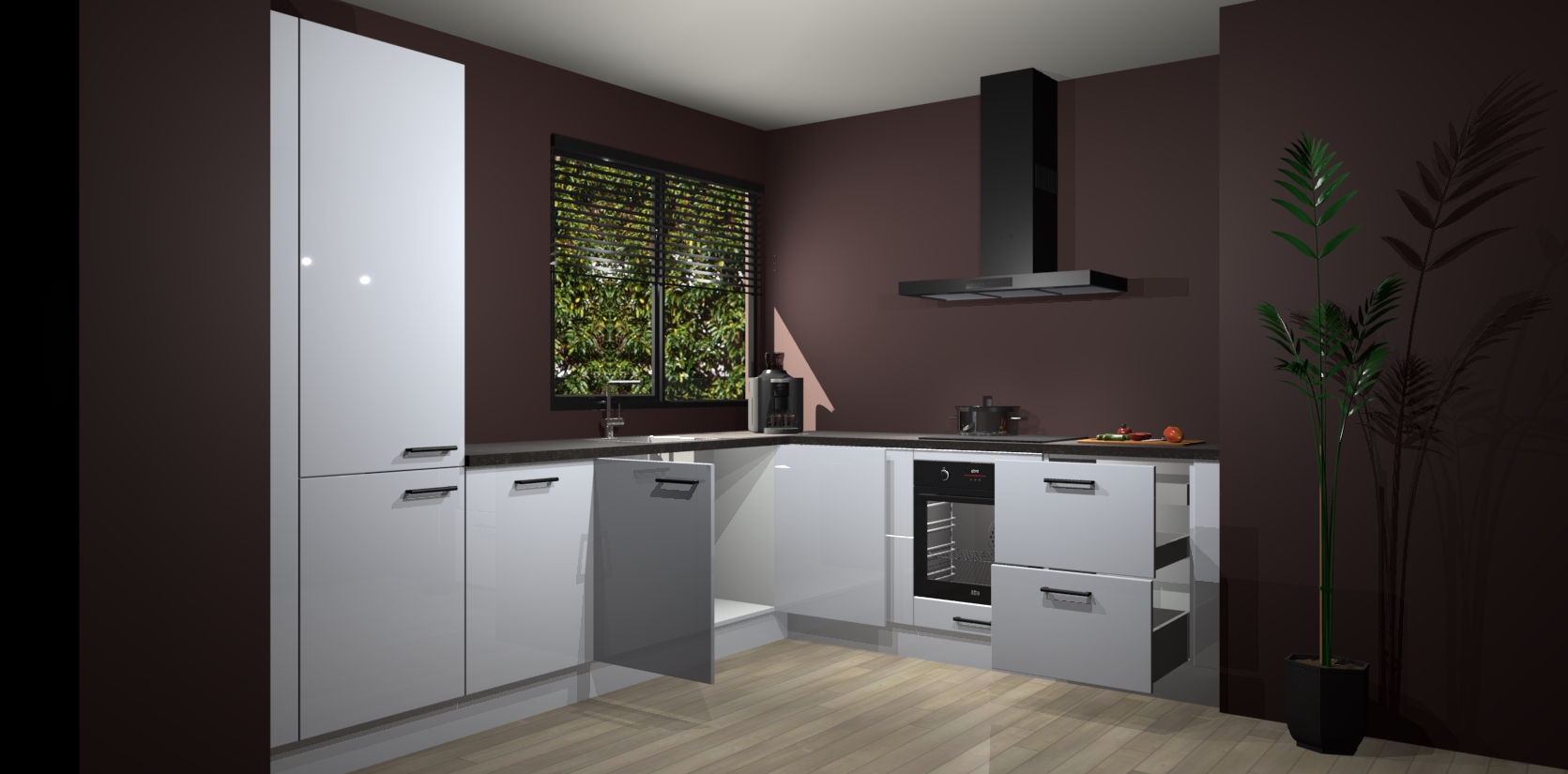 Met een modern, tijdloos design en ruime opslagruimte, zult u zich in no-time thuis voelen in uw nieuwe keuken. Uw leven wordt eenvoudiger met de soft-close deuren die voor het ultieme stille comfort zorgen - geen geluid dat u stoort terwijl u kookt. Ook is de keuken voorzien van 5 ingebouwde apparaten: een oven, inductie kookplaat, afzuigkap, vaatwasser en koelkast. Deze kunnen gemakkelijk na bestelling worden bijgewerkt naar AEG - waardoor uw luxe ervaring compleet is.