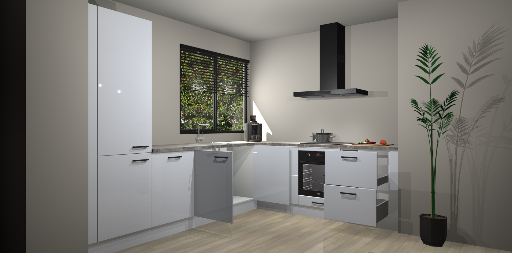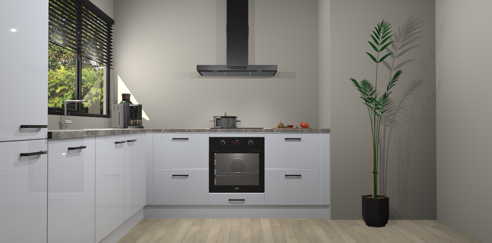 Met een modern, tijdloos design en ruime opslagruimte, zult u zich in no-time thuis voelen in uw nieuwe keuken. Uw leven wordt eenvoudiger met de soft-close deuren die voor het ultieme stille comfort zorgen - geen geluid dat u stoort terwijl u kookt. Ook is de keuken voorzien van 5 ingebouwde apparaten: een oven, inductie kookplaat, afzuigkap, vaatwasser en koelkast. Deze kunnen gemakkelijk na bestelling worden bijgewerkt naar AEG - waardoor uw luxe ervaring compleet is.
