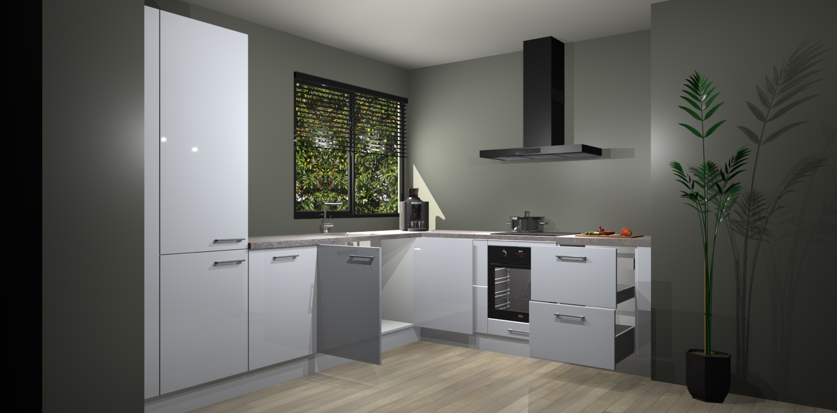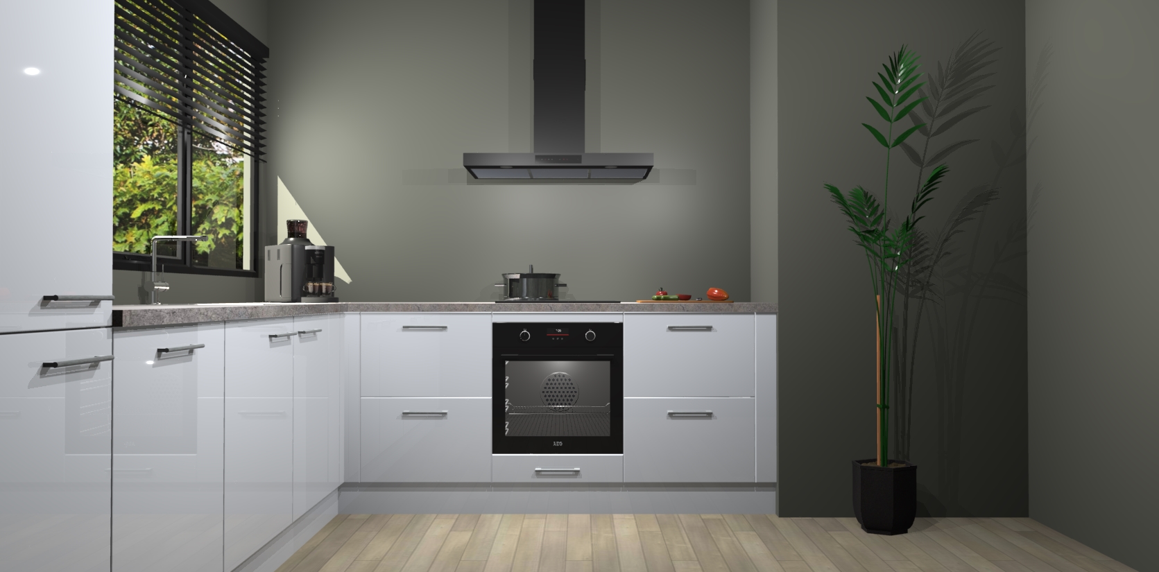 Met een modern, tijdloos design en ruime opslagruimte, zult u zich in no-time thuis voelen in uw nieuwe keuken. Uw leven wordt eenvoudiger met de soft-close deuren die voor het ultieme stille comfort zorgen - geen geluid dat u stoort terwijl u kookt. Ook is de keuken voorzien van 5 ingebouwde apparaten: een oven, inductie kookplaat, afzuigkap, vaatwasser en koelkast. Deze kunnen gemakkelijk na bestelling worden bijgewerkt naar AEG - waardoor uw luxe ervaring compleet is.