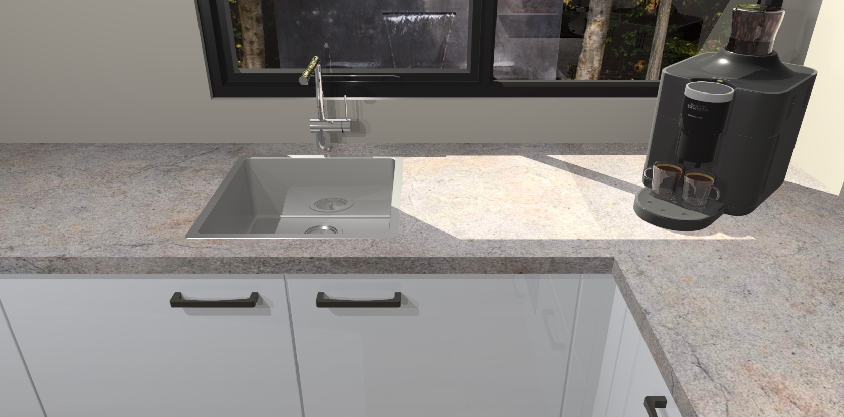 - De spoelbak is nog niet in gevreesd. Dit dient tijdens het werk gedaan te worden