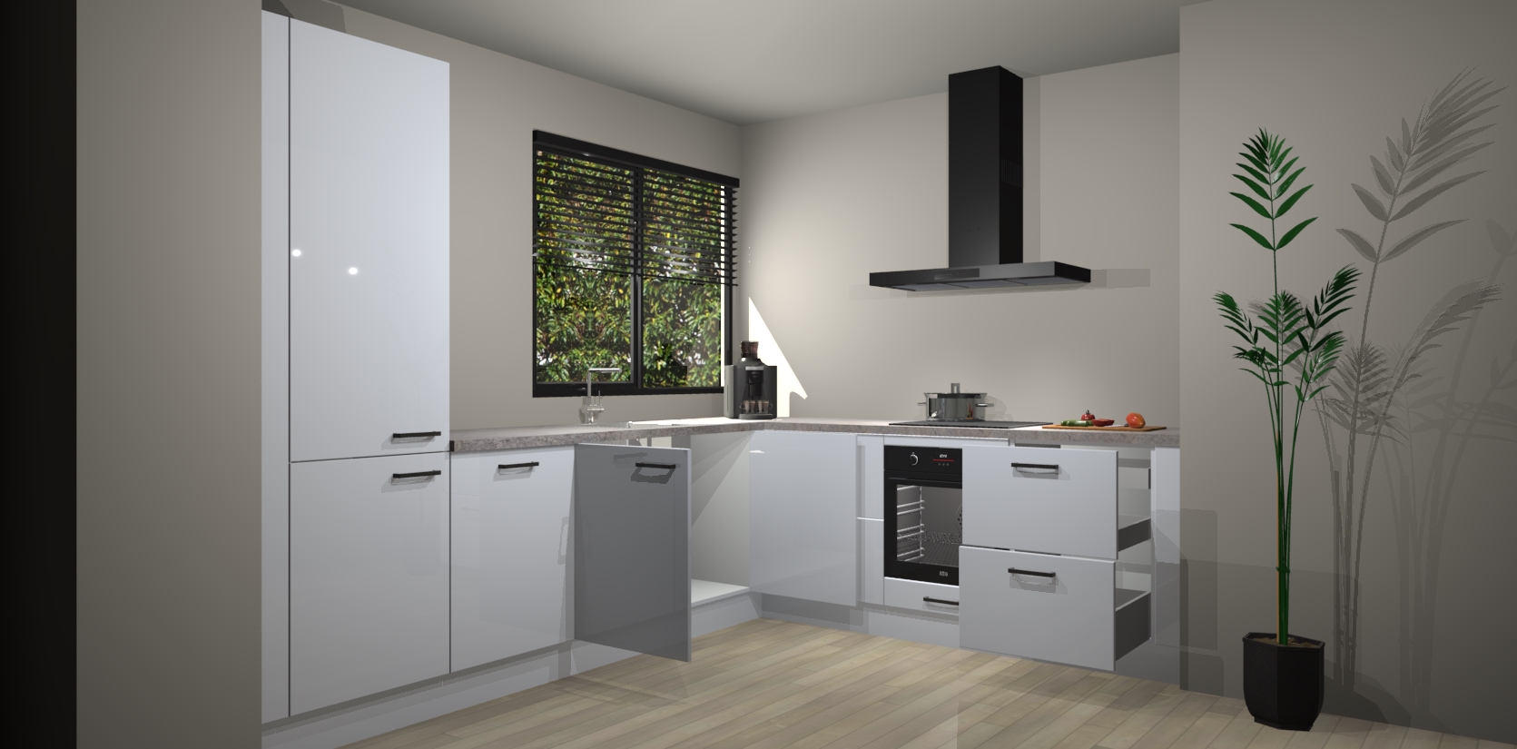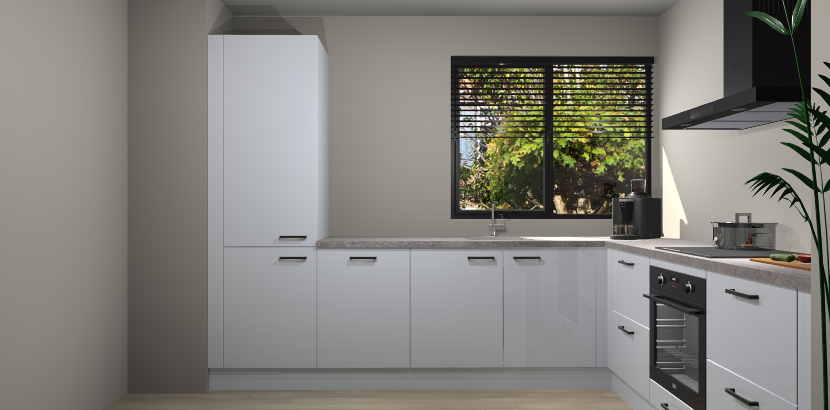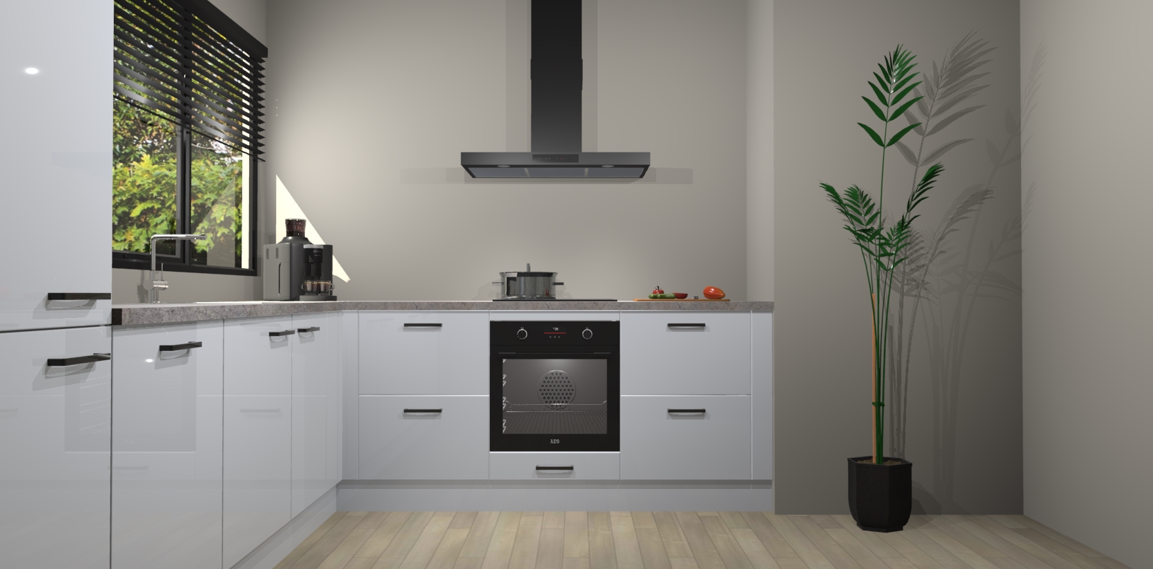 Met een modern, tijdloos design en ruime opslagruimte, zult u zich in no-time thuis voelen in uw nieuwe keuken. Uw leven wordt eenvoudiger met de soft-close deuren die voor het ultieme stille comfort zorgen - geen geluid dat u stoort terwijl u kookt. Ook is de keuken voorzien van 5 ingebouwde apparaten: een oven, inductie kookplaat, afzuigkap, vaatwasser en koelkast. Deze kunnen gemakkelijk na bestelling worden bijgewerkt naar AEG - waardoor uw luxe ervaring compleet is.