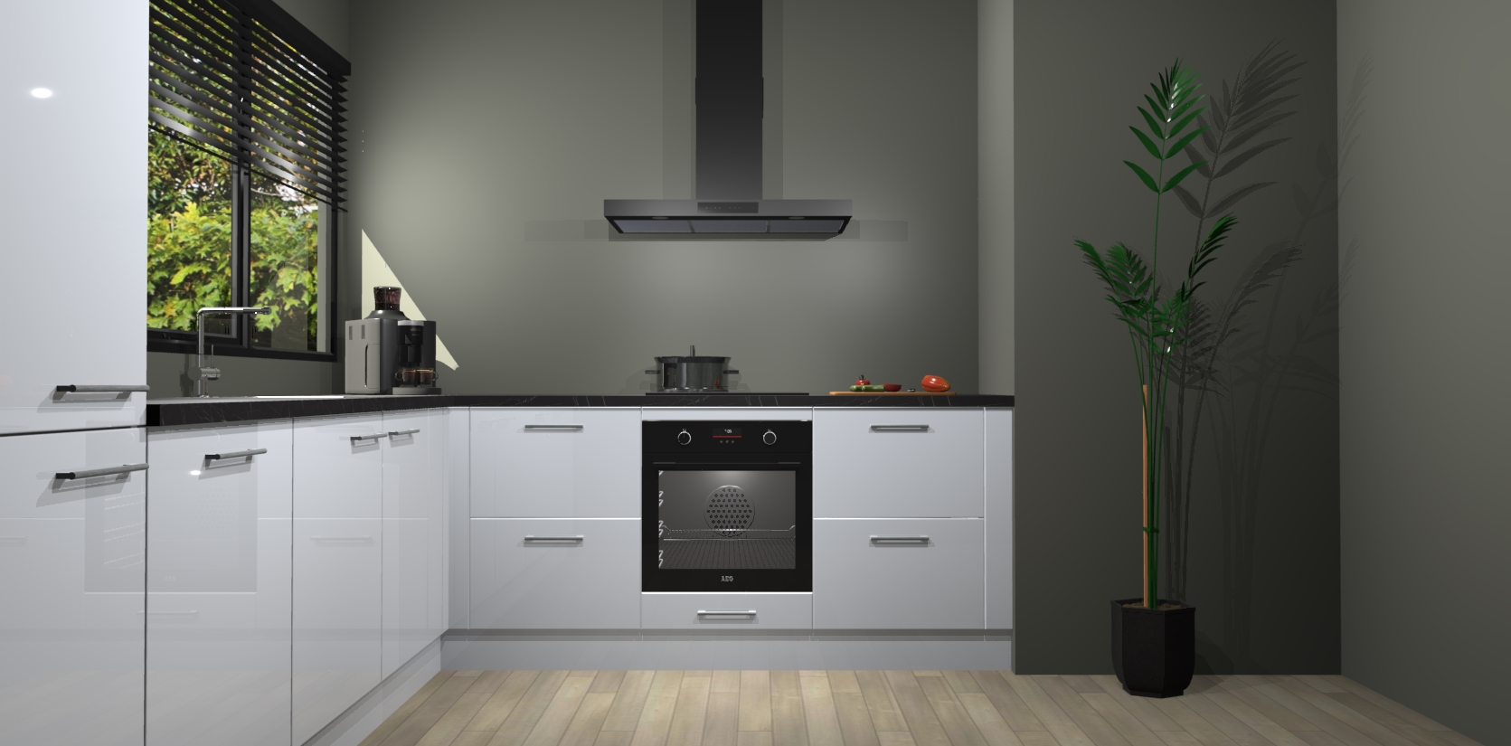 Met een modern, tijdloos design en ruime opslagruimte, zult u zich in no-time thuis voelen in uw nieuwe keuken. Uw leven wordt eenvoudiger met de soft-close deuren die voor het ultieme stille comfort zorgen - geen geluid dat u stoort terwijl u kookt. Ook is de keuken voorzien van 5 ingebouwde apparaten: een oven, inductie kookplaat, afzuigkap, vaatwasser en koelkast. Deze kunnen gemakkelijk na bestelling worden bijgewerkt naar AEG - waardoor uw luxe ervaring compleet is.
