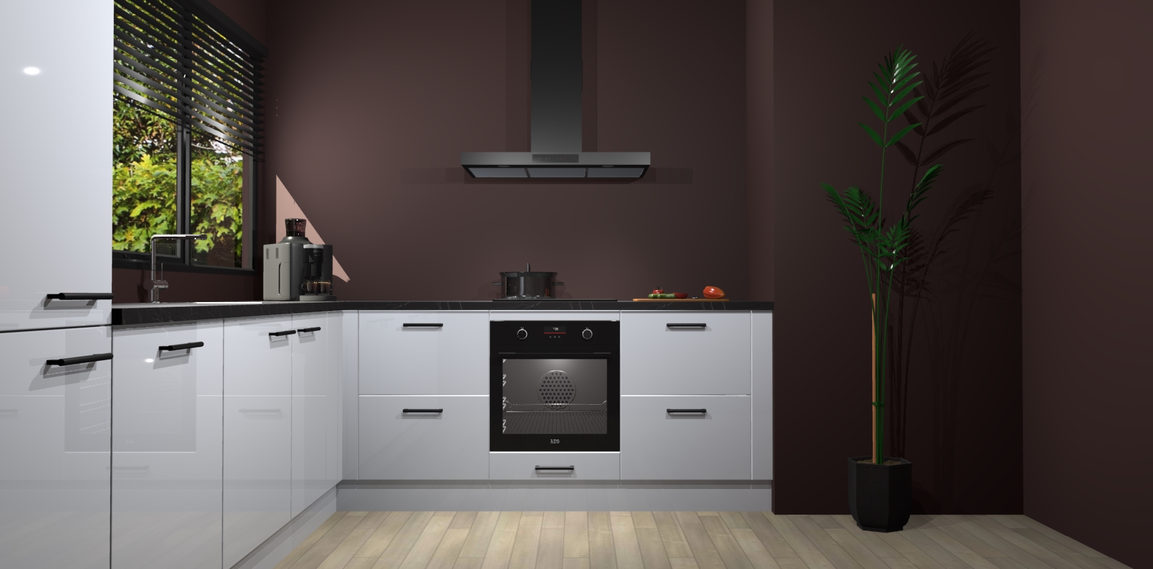 Met een modern, tijdloos design en ruime opslagruimte, zult u zich in no-time thuis voelen in uw nieuwe keuken. Uw leven wordt eenvoudiger met de soft-close deuren die voor het ultieme stille comfort zorgen - geen geluid dat u stoort terwijl u kookt. Ook is de keuken voorzien van 5 ingebouwde apparaten: een oven, inductie kookplaat, afzuigkap, vaatwasser en koelkast. Deze kunnen gemakkelijk na bestelling worden bijgewerkt naar AEG - waardoor uw luxe ervaring compleet is.