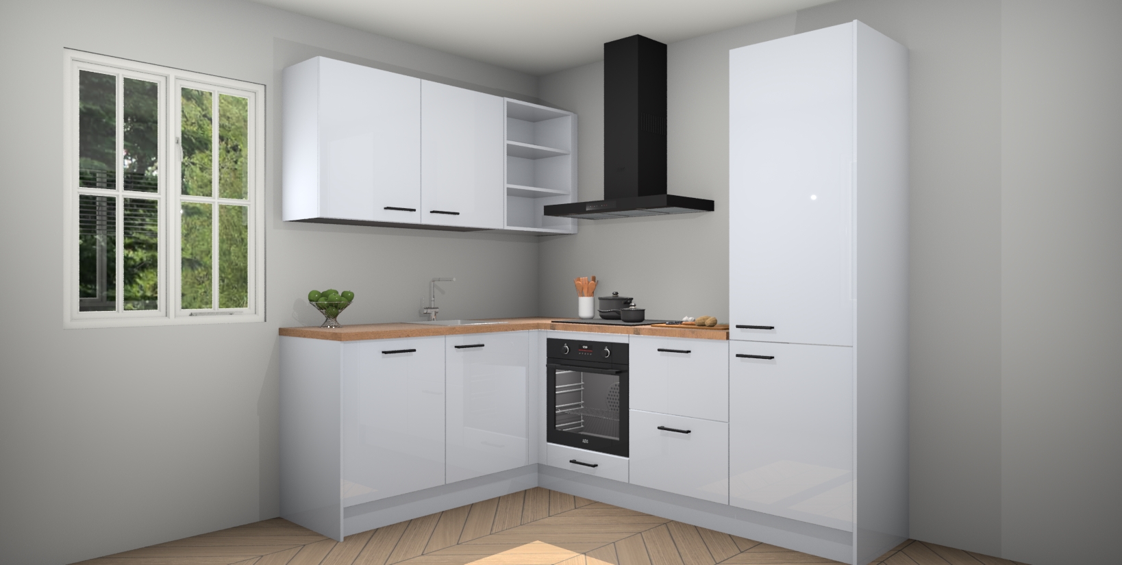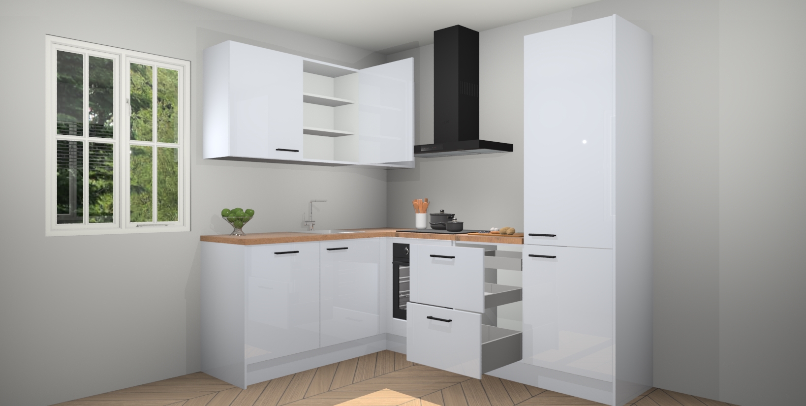 Maak kennis met de Sneeuwwitte hoogglans keuken Boekarest, een moderne hoekkeuken waar al uw vrienden en familie jaloers op zullen zijn! Het verbluffende mooie ontwerp past in elk interieur en is een ideale keuze voor wie op zoek is naar een klassieke, maar verfijnde look.
