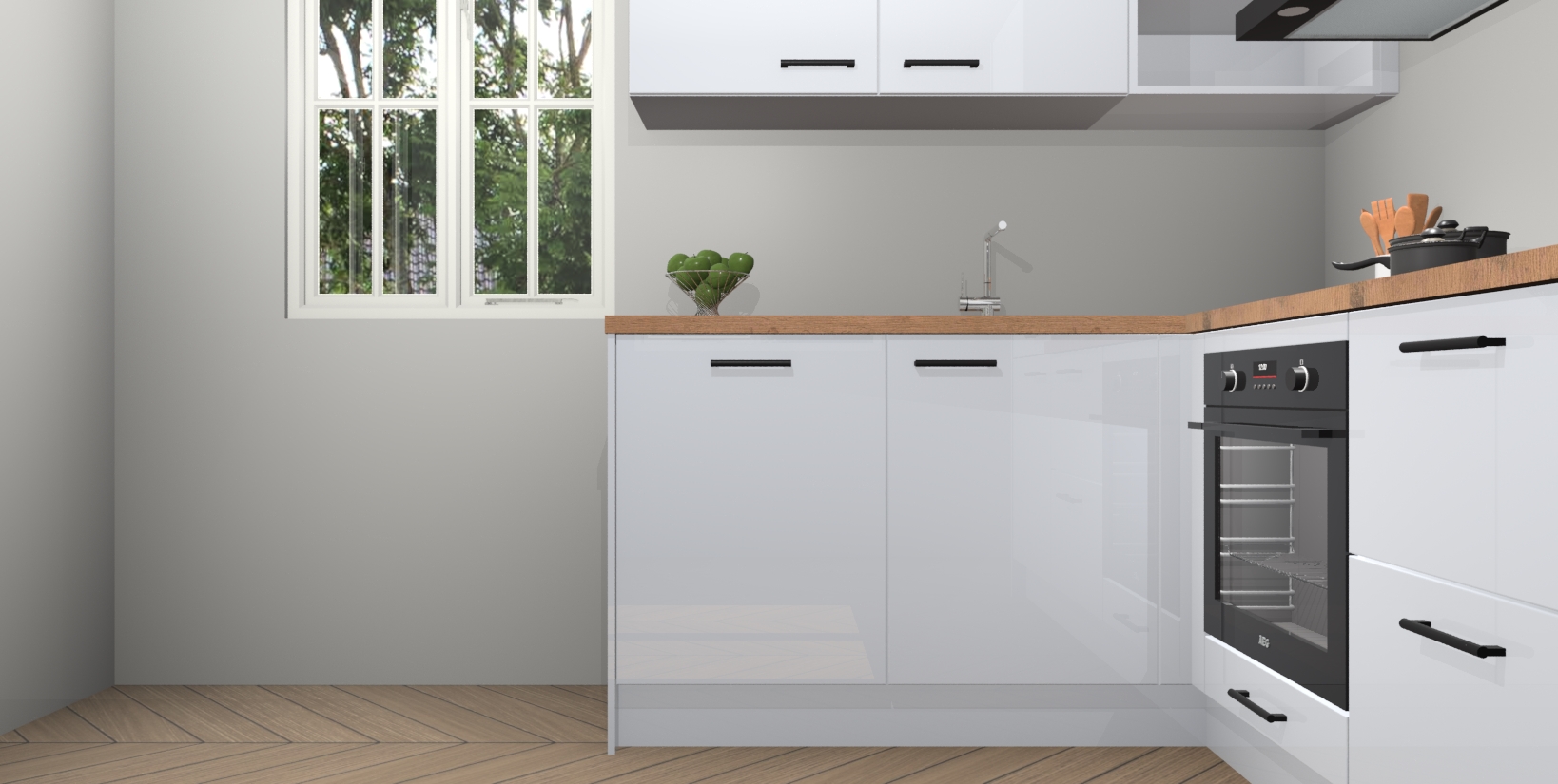 Inclusief plinten, stelpoten en werkblad