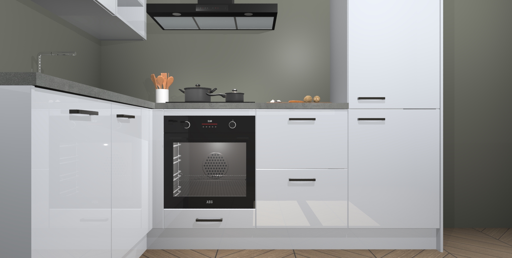 Voor nog meer gemak heeft deze keuken vijf ingebouwde apparaten - oven, inductiekookplaat, afzuigkap, vaatwasser en koelkast. Bovendien hebben alle kasten softclose deuren voor extra comfort bij het sluiten. Dit alles voor een verrassend lage vaste prijs - u vindt nergens anders een betere deal!