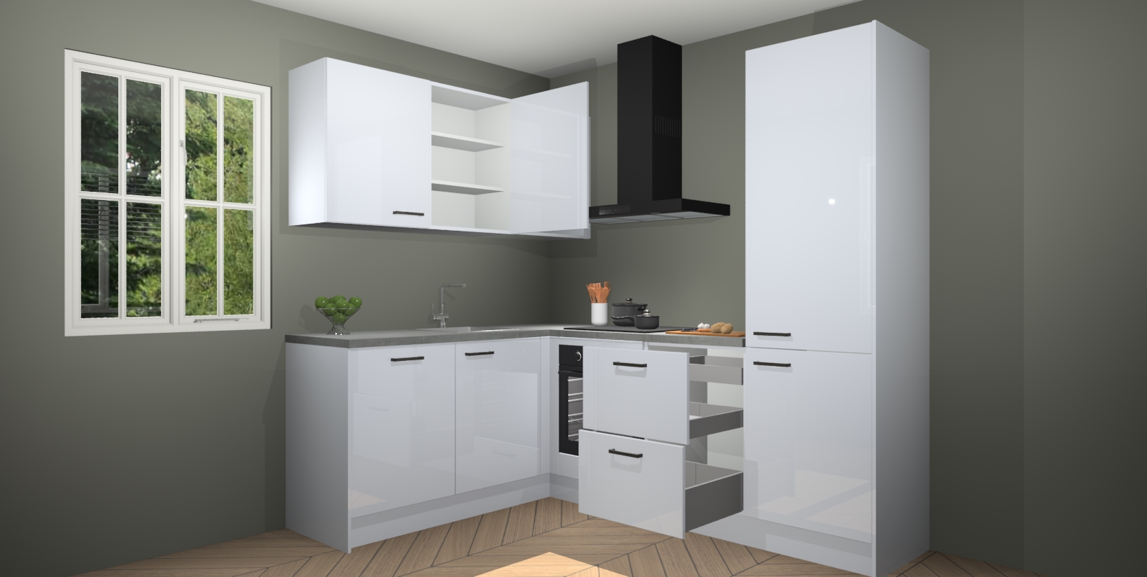 Maak kennis met de Sneeuwwitte hoogglans keuken Boekarest, een moderne hoekkeuken waar al uw vrienden en familie jaloers op zullen zijn! Het verbluffende mooie ontwerp past in elk interieur en is een ideale keuze voor wie op zoek is naar een klassieke, maar verfijnde look.