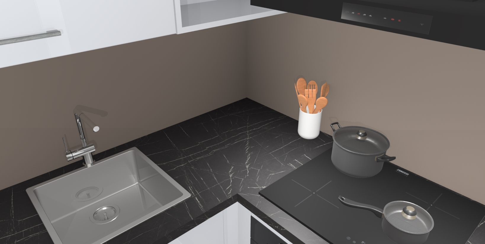 - Uitsparing van kookplaat, spoelbak en kraan dient u zelf te verzorgen.