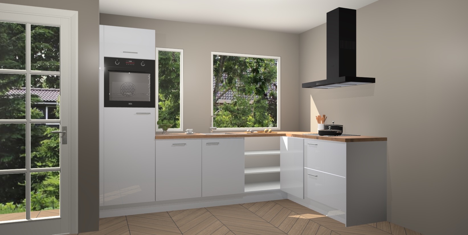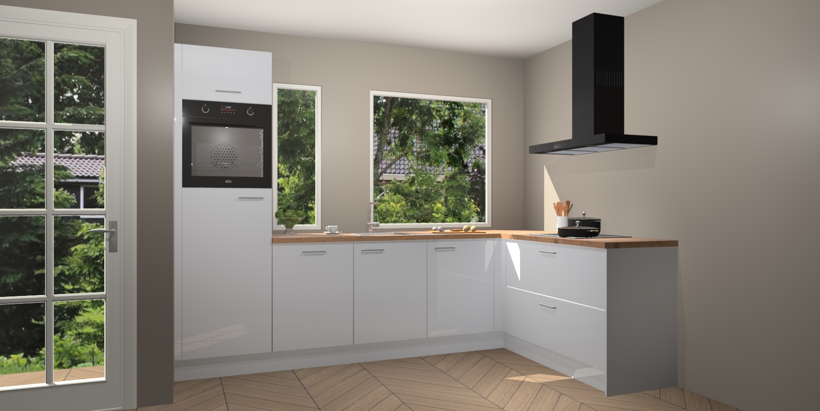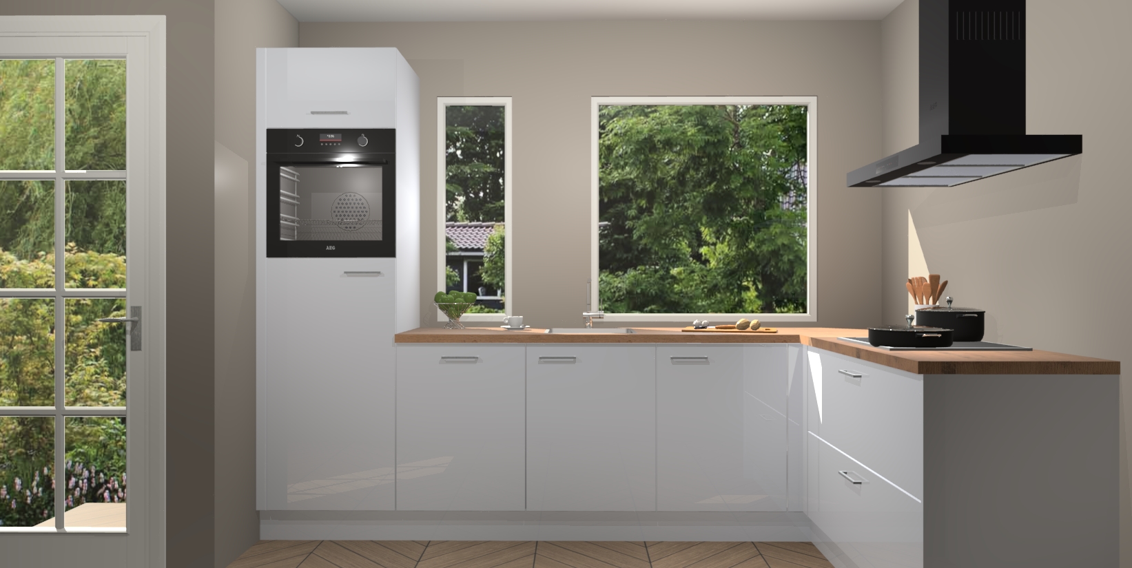 Deze complete keuken wordt geleverd met 5 inbouwapparaten: een oven, inductiekookplaat, afzuigkap, vaatwasser en koelkast. De toestellen kunnen na bestelling ook gemakkelijk worden opgewaardeerd naar AEG. Bovendien is elke deur in deze keuken voorzien van handige softclose technologie voor eenvoudig gebruik! Als een leuke toevoeging zit in deze keuken ook een carrousel, zo hoef je niet meer de hoek in duiken om iets te pakken.