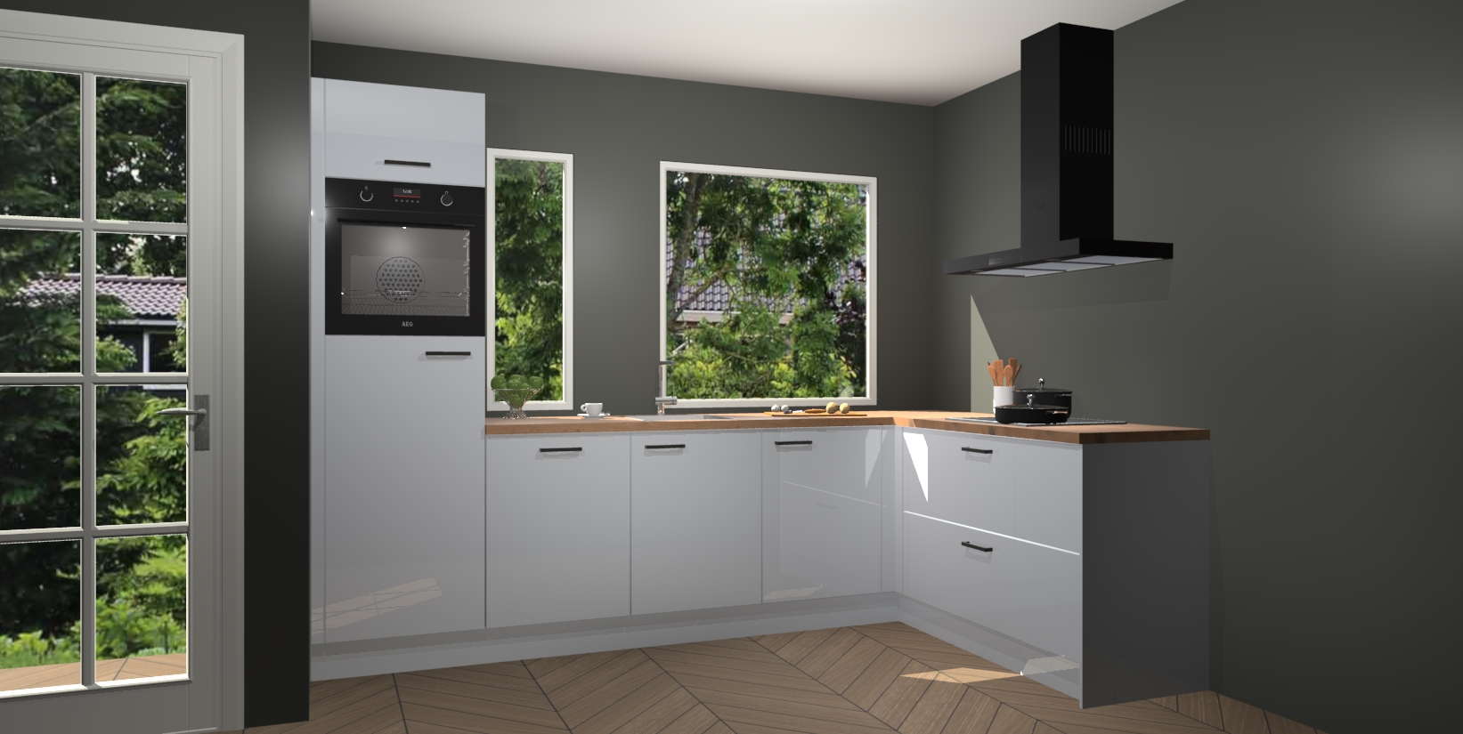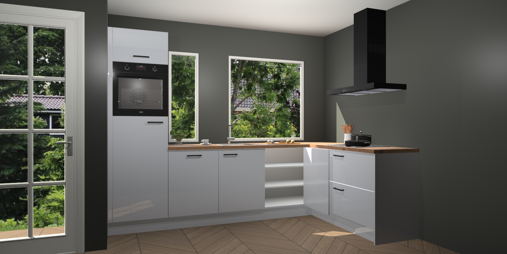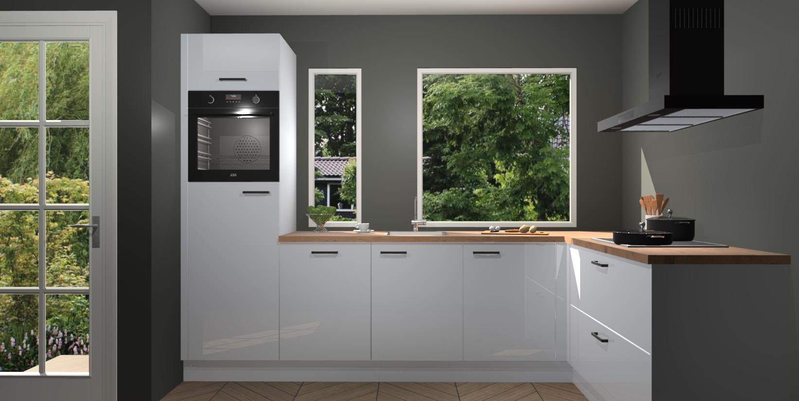 Deze complete keuken wordt geleverd met 5 inbouwapparaten: een oven, inductiekookplaat, afzuigkap, vaatwasser en koelkast.  De toestellen kunnen na bestelling ook gemakkelijk worden opgewaardeerd naar AEG. Bovendien is elke deur in deze keuken voorzien van handige softclose technologie voor eenvoudig gebruik! Als een leuke toevoeging zit in deze keuken ook een carrousel, zo hoef je niet meer de hoek in duiken om iets te pakken.