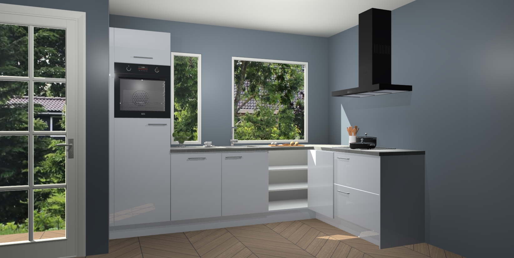 Deze complete keuken wordt geleverd met 5 inbouwapparaten: een oven, inductiekookplaat, afzuigkap, vaatwasser en koelkast. De toestellen kunnen na bestelling ook gemakkelijk worden opgewaardeerd naar AEG. Bovendien is elke deur in deze keuken voorzien van handige softclose technologie voor eenvoudig gebruik! Als een leuke toevoeging zit in deze keuken ook een carrousel, zo hoef je niet meer de hoek in duiken om iets te pakken.