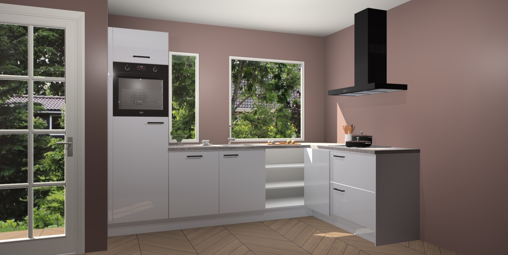Deze complete keuken wordt geleverd met 5 inbouwapparaten: een oven, inductiekookplaat, afzuigkap, vaatwasser en koelkast. De toestellen kunnen na bestelling ook gemakkelijk worden opgewaardeerd naar AEG. Bovendien is elke deur in deze keuken voorzien van handige softclose technologie voor eenvoudig gebruik! Als een leuke toevoeging zit in deze keuken ook een carrousel, zo hoef je niet meer de hoek in duiken om iets te pakken.