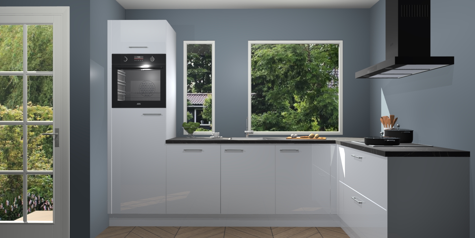 Deze complete keuken wordt geleverd met 5 inbouwapparaten: een oven, inductiekookplaat, afzuigkap, vaatwasser en koelkast. De toestellen kunnen na bestelling ook gemakkelijk worden opgewaardeerd naar AEG. Bovendien is elke deur in deze keuken voorzien van handige softclose technologie voor eenvoudig gebruik! Als een leuke toevoeging zit in deze keuken ook een carrousel, zo hoef je niet meer de hoek in duiken om iets te pakken.