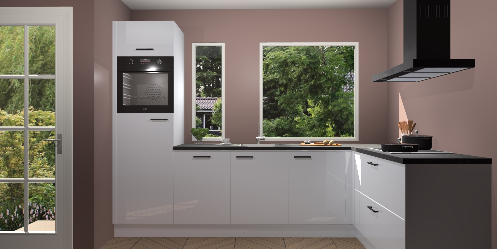 Deze complete keuken wordt geleverd met 5 inbouwapparaten: een oven, inductiekookplaat, afzuigkap, vaatwasser en koelkast. De toestellen kunnen na bestelling ook gemakkelijk worden opgewaardeerd naar AEG. Bovendien is elke deur in deze keuken voorzien van handige softclose technologie voor eenvoudig gebruik! Als een leuke toevoeging zit in deze keuken ook een carrousel, zo hoef je niet meer de hoek in duiken om iets te pakken.