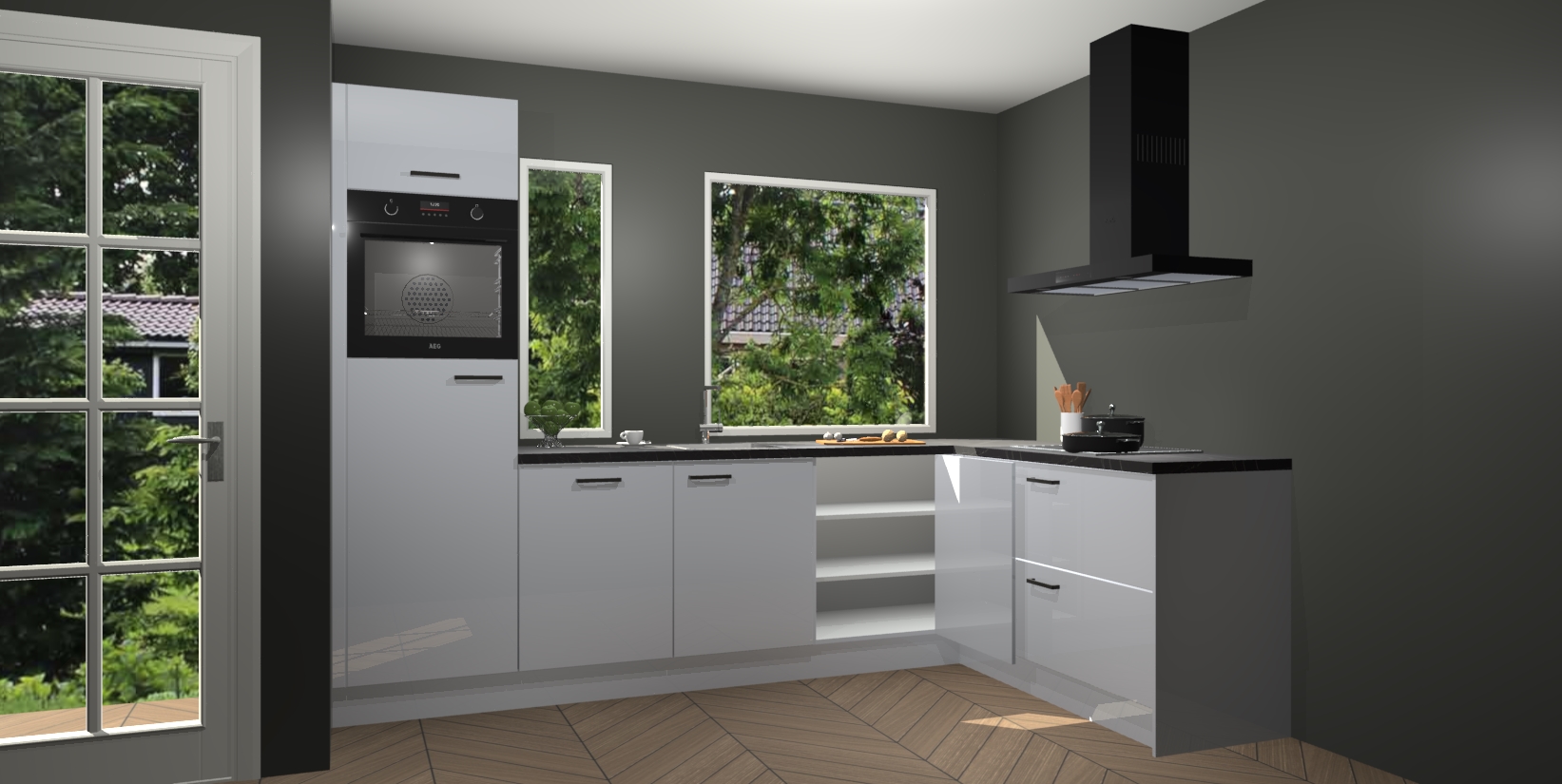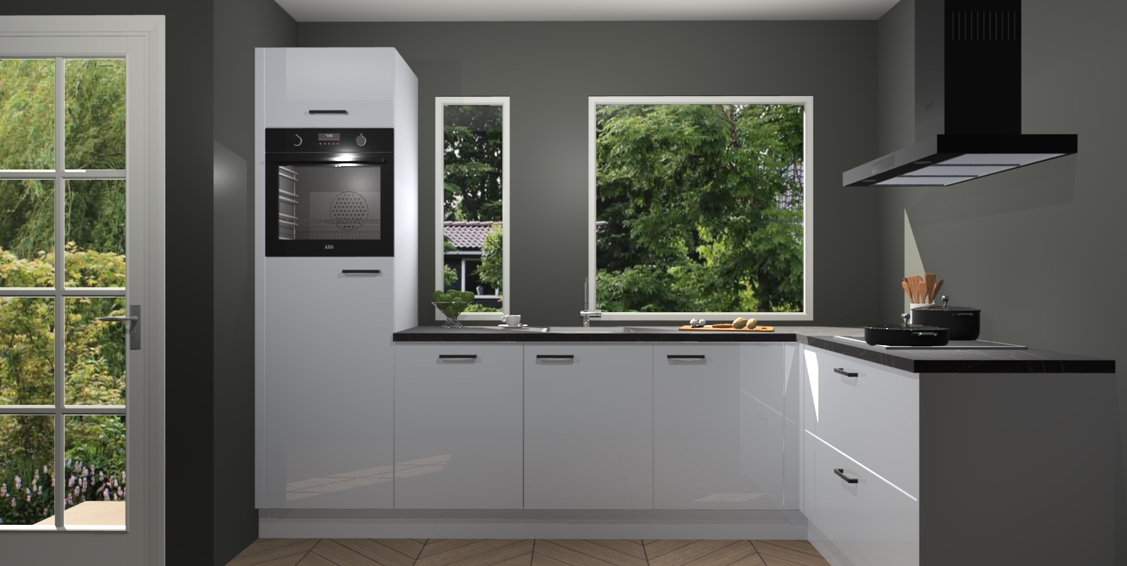 Deze complete keuken wordt geleverd met 5 inbouwapparaten: een oven, inductiekookplaat, afzuigkap, vaatwasser en koelkast. De toestellen kunnen na bestelling ook gemakkelijk worden opgewaardeerd naar AEG. Bovendien is elke deur in deze keuken voorzien van handige softclose technologie voor eenvoudig gebruik! Als een leuke toevoeging zit in deze keuken ook een carrousel, zo hoef je niet meer de hoek in duiken om iets te pakken.