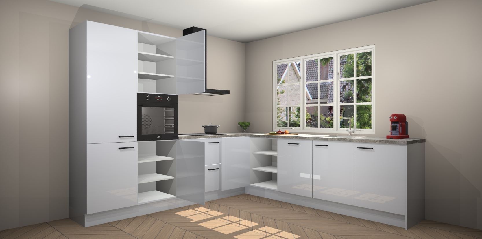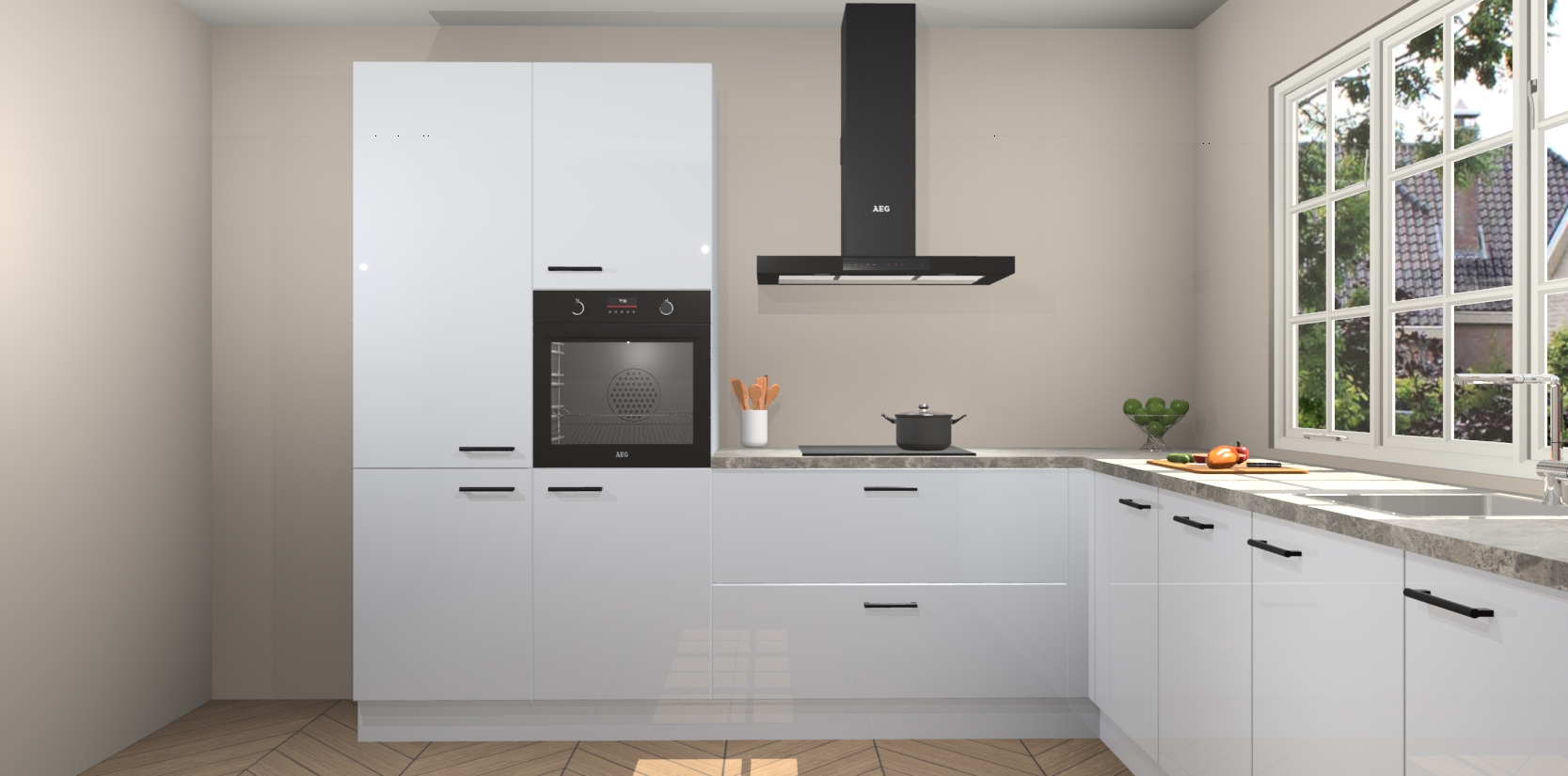 De keuken heeft veel opbergruimte, waardoor u alle ingrediënten gemakkelijk bereikbaar hebt staan. En daarnaast bevat deze volledig uitgeruste keuken ook 5 ingebouwde apparaten: een oven, inductiekookplaat, afzuigkap, vaatwasser en koelkast. Deze zijn heel eenvoudig na bestellen te upgraden naar AEG als u dit wilt. Bovendien zijn de softclose-kastdeuren ideaal; geef ze gewoon even een tikje en ze sluiten automatisch met geruisloze precisie.