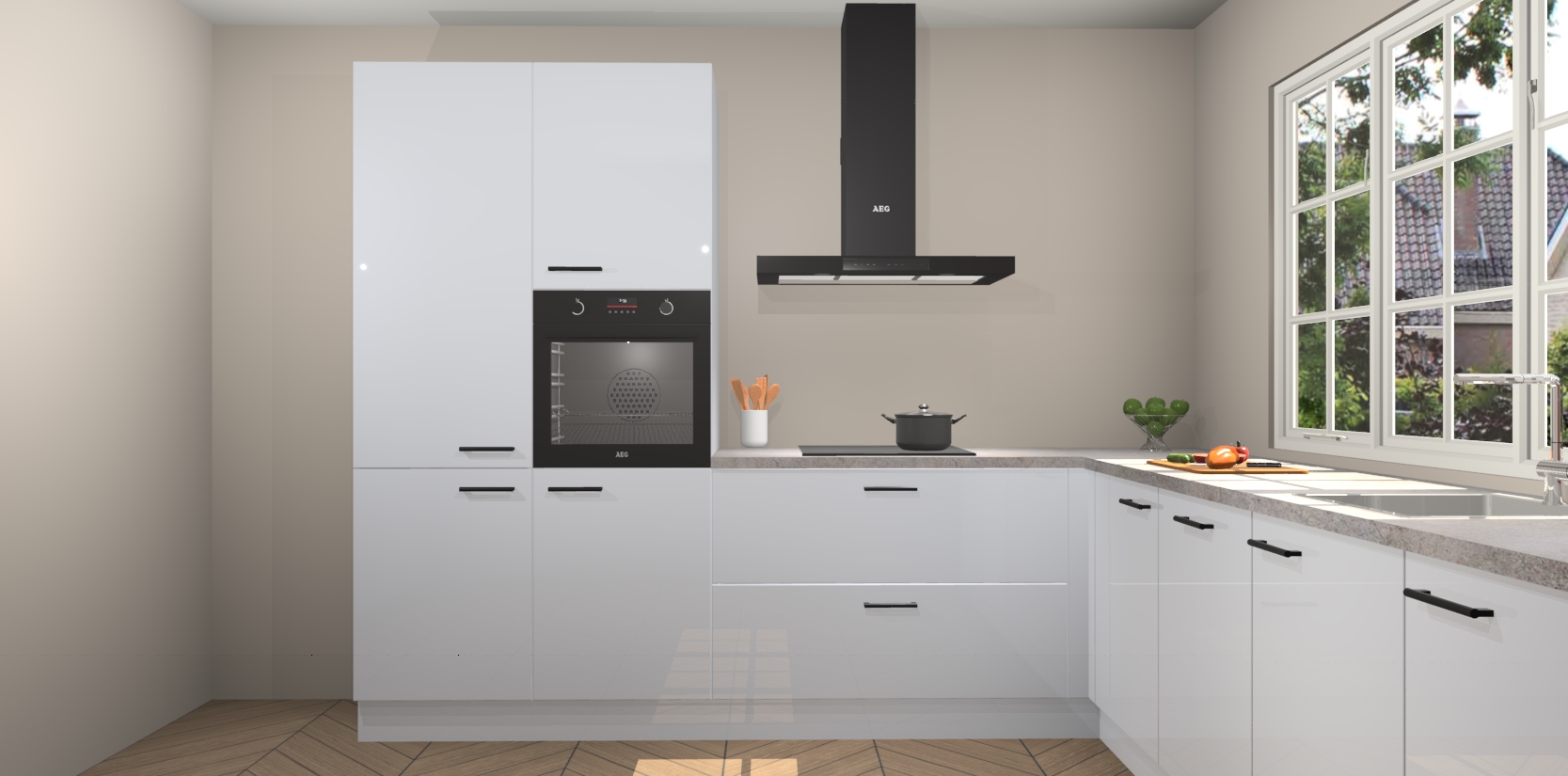 De keuken heeft veel opbergruimte, waardoor u alle ingrediënten gemakkelijk bereikbaar hebt staan. En daarnaast bevat deze volledig uitgeruste keuken ook 5 ingebouwde apparaten: een oven, inductiekookplaat, afzuigkap, vaatwasser en koelkast. Deze zijn heel eenvoudig na bestellen te upgraden naar AEG als u dit wilt. Bovendien zijn de softclose-kastdeuren ideaal; geef ze gewoon even een tikje en ze sluiten automatisch met geruisloze precisie.